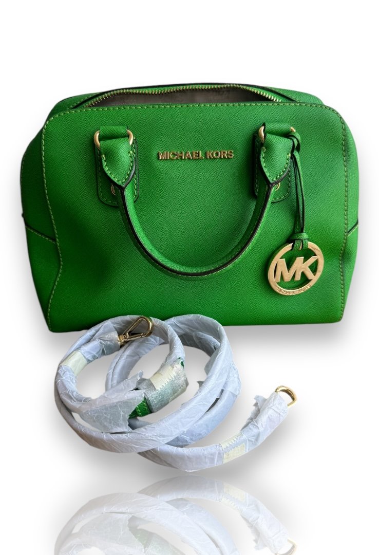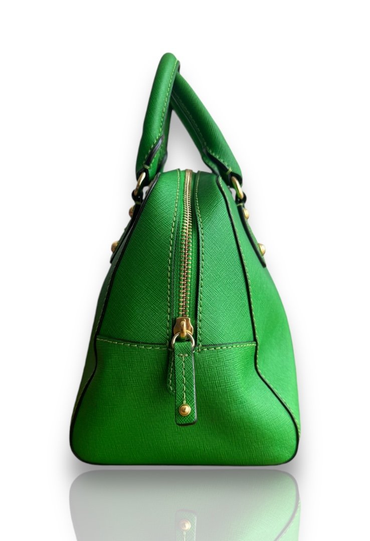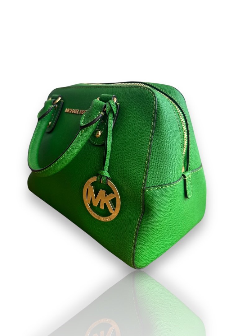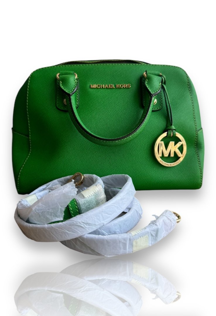 Bolso crossbody, color verde atrevido y herrajes dorados,.