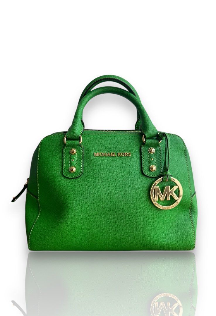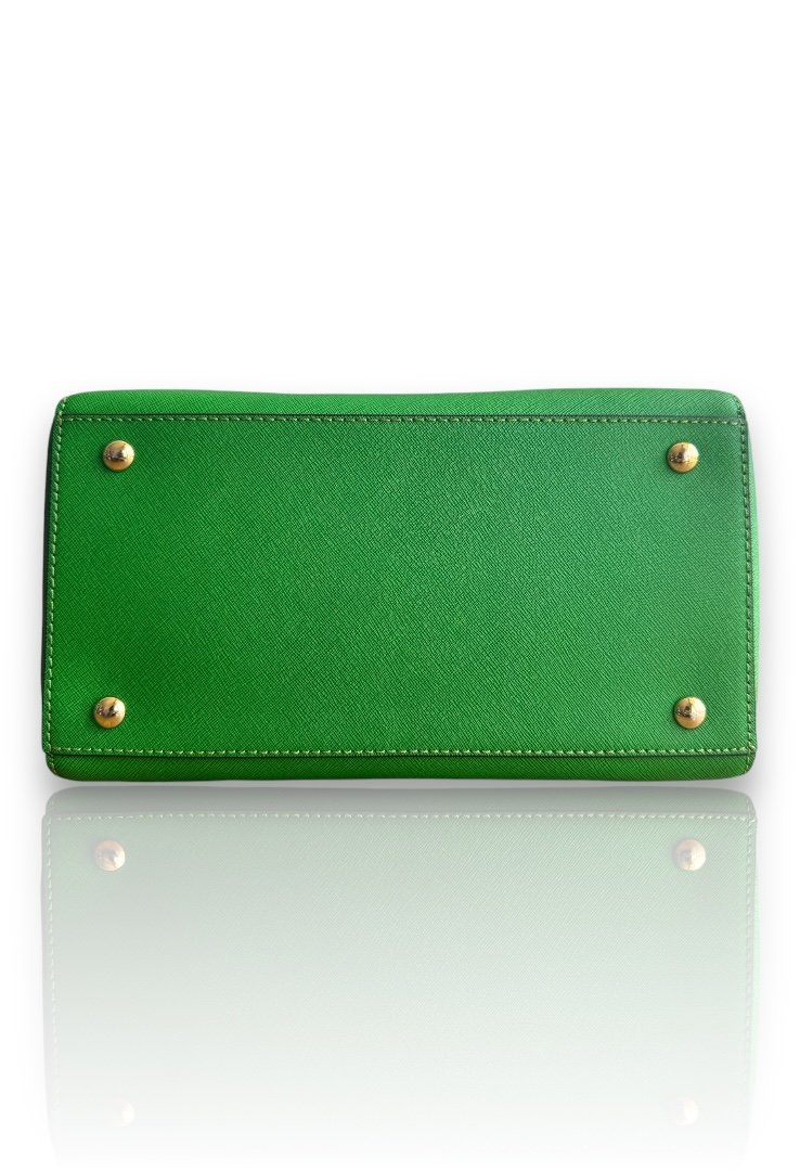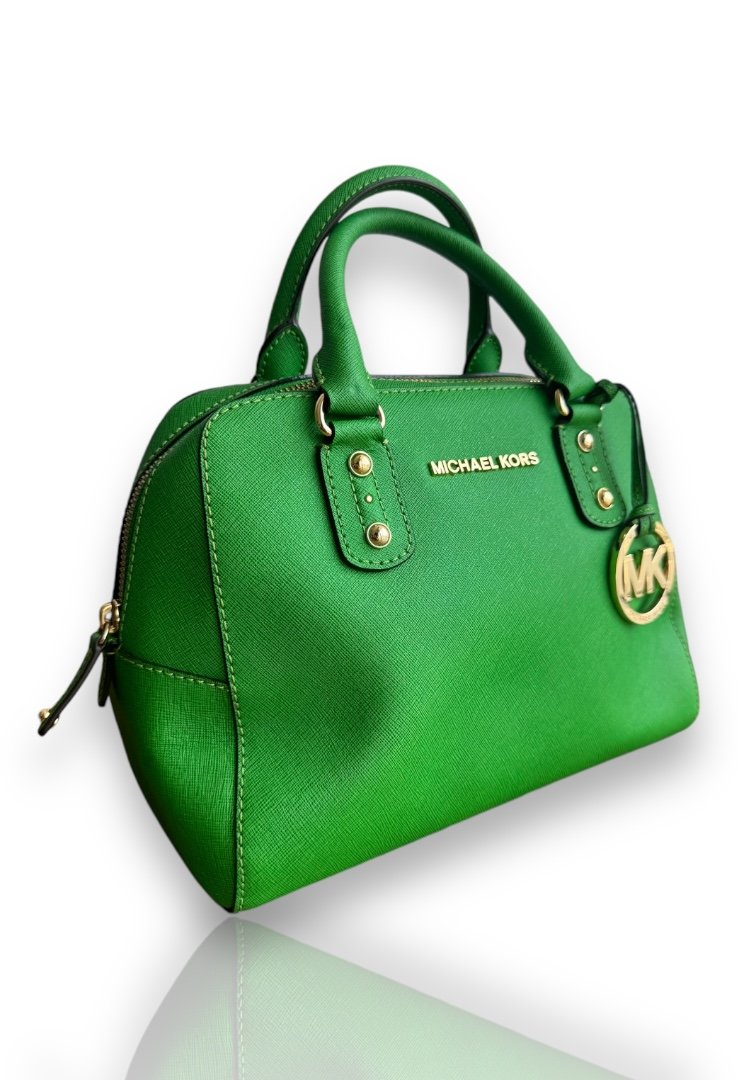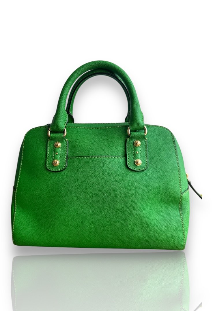 Bolso crossbody, color verde atrevido y herrajes dorados,.