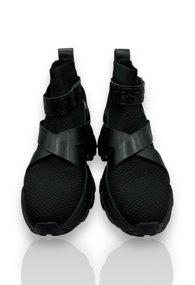 Piel de becerro, puntera redonda, correa multiusos, diseño por el tobillo, lengüeta en la parte posterior y suela gruesa de goma.