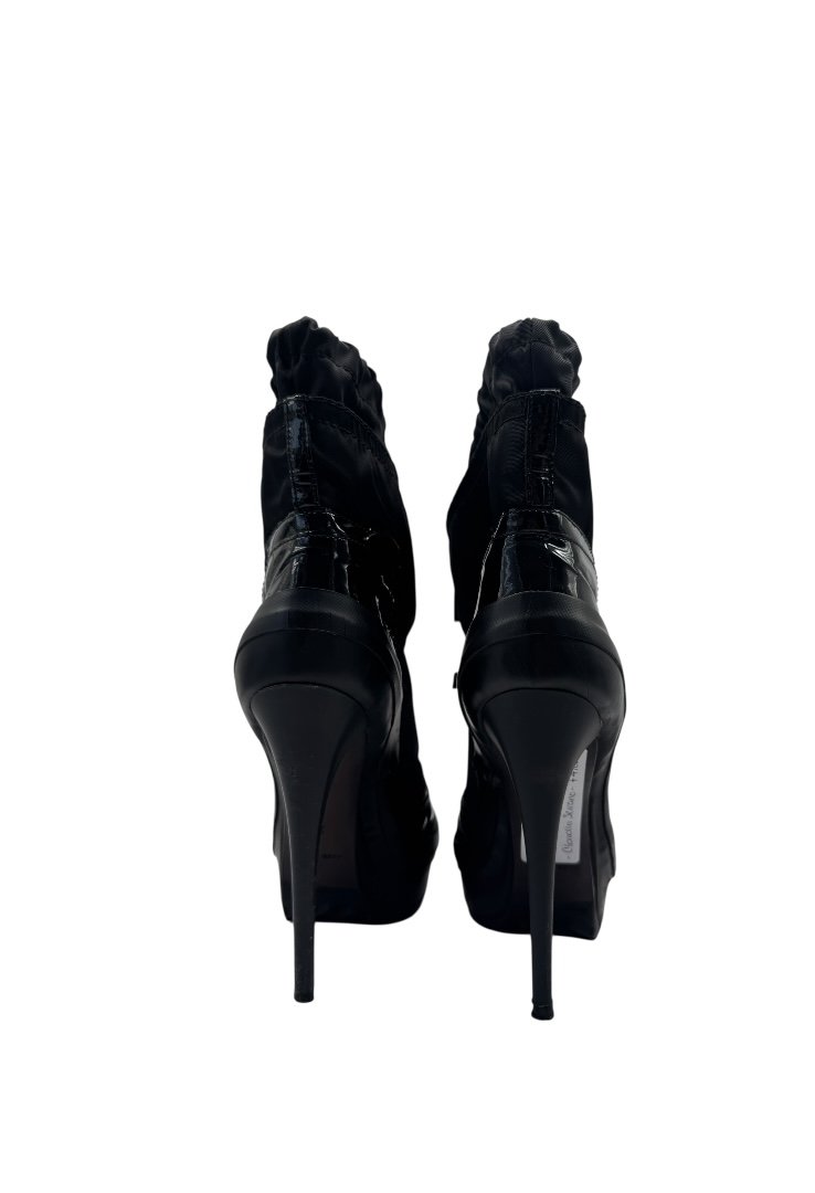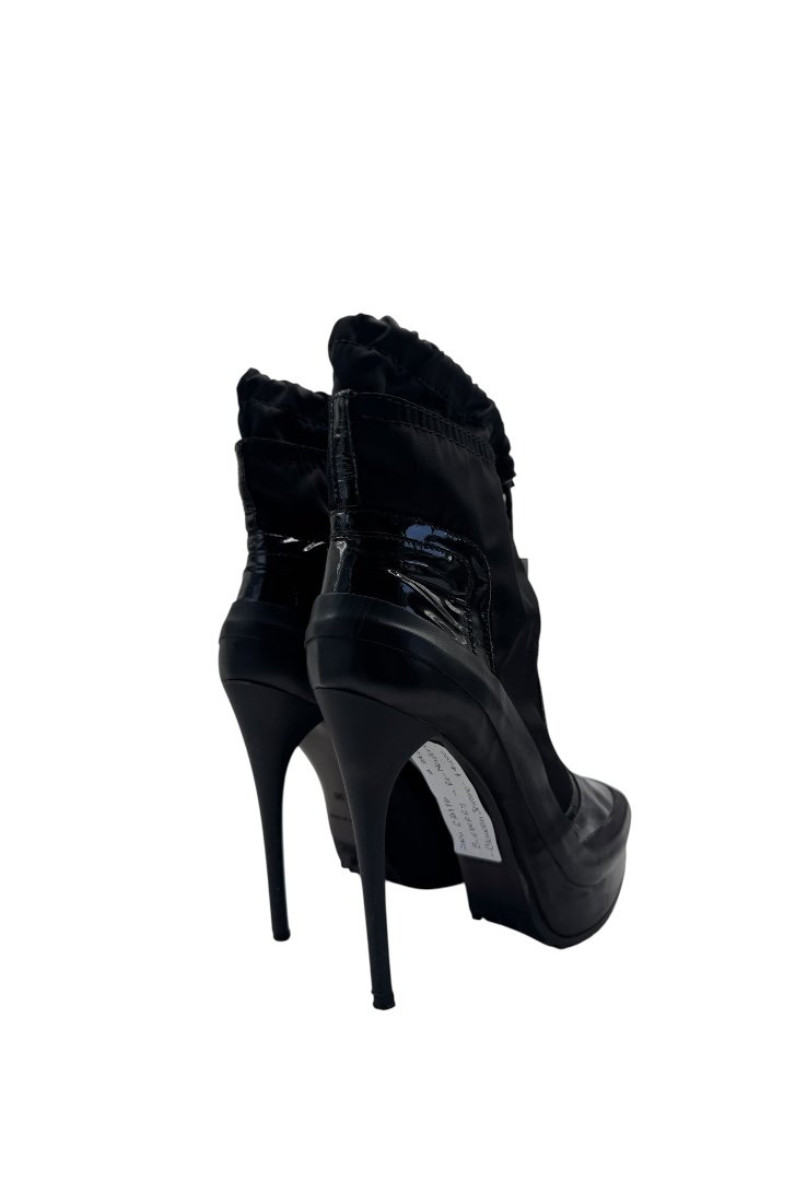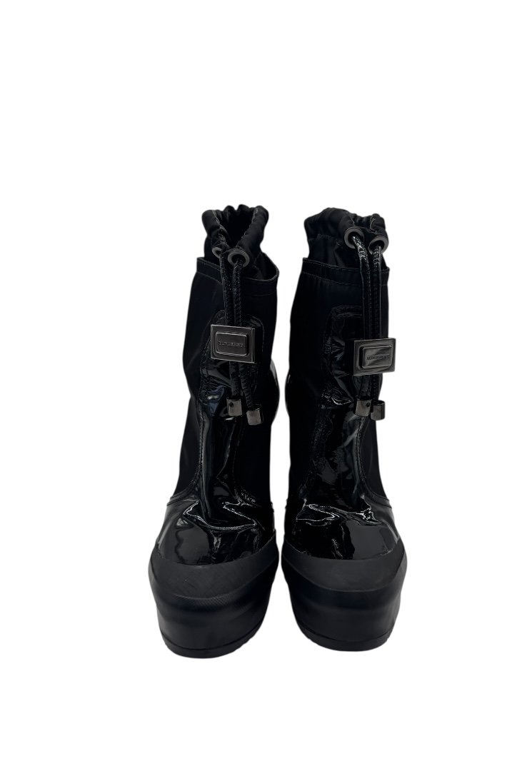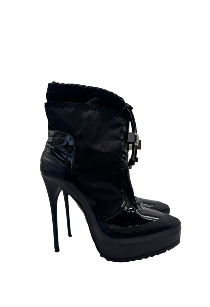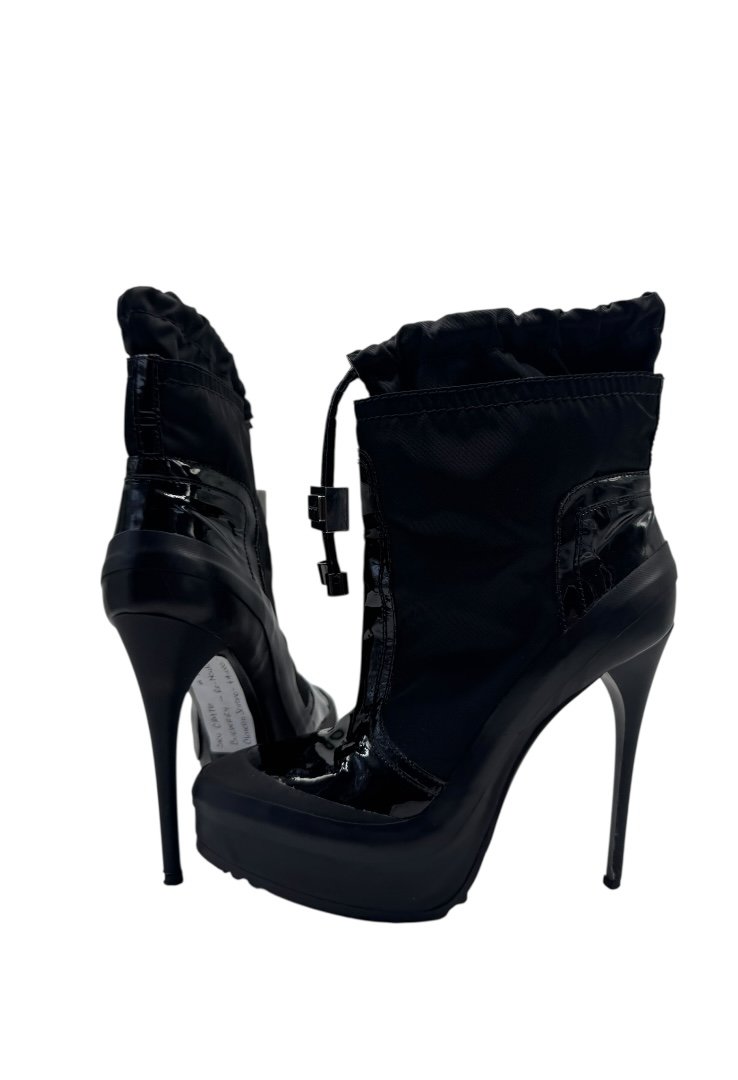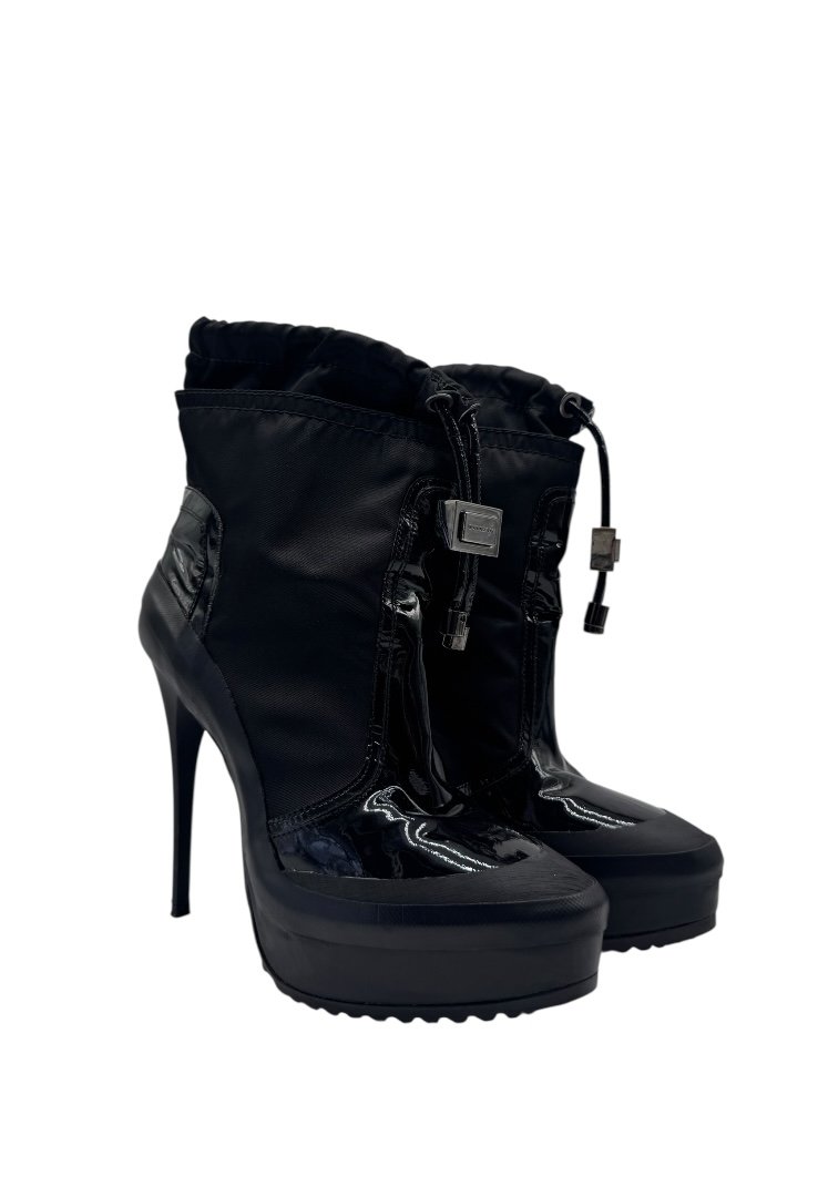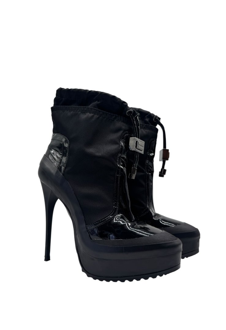 Botines de nylon, cordones ajustable con broche en plata, suela de goma.