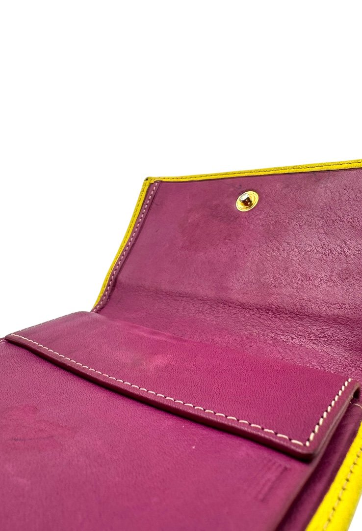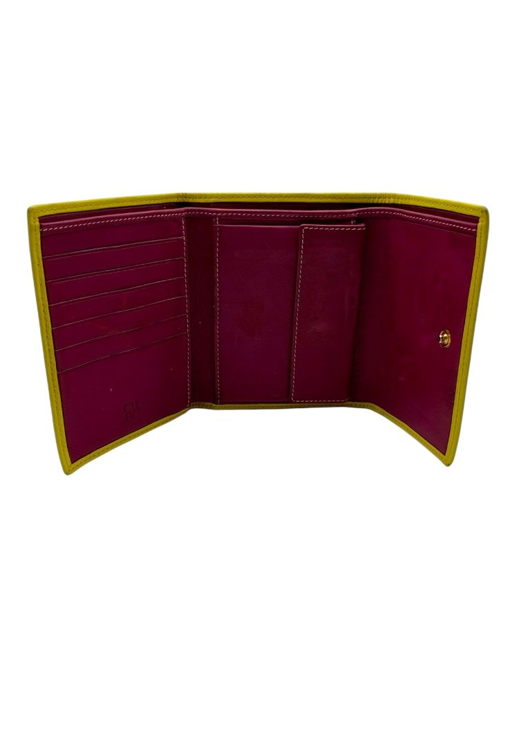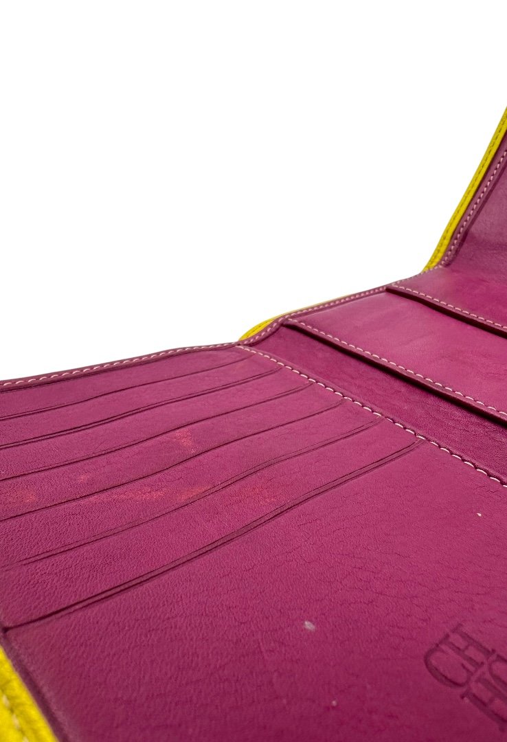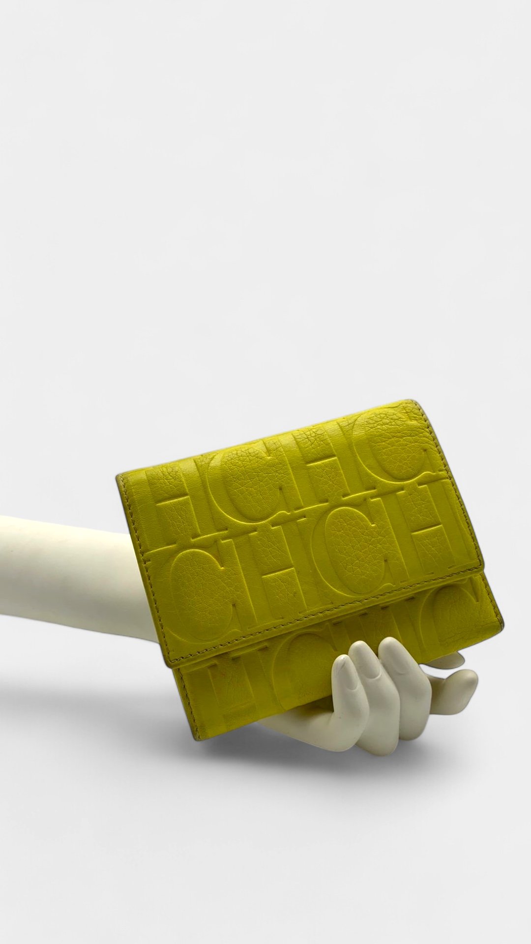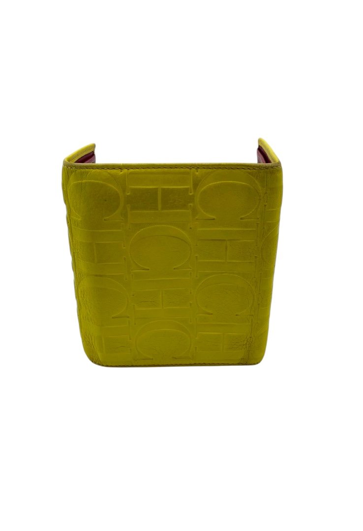 Elaborada piel nogal, de grano natural y acabado encerado, con el sello de las iniciales de Carolina grabado.