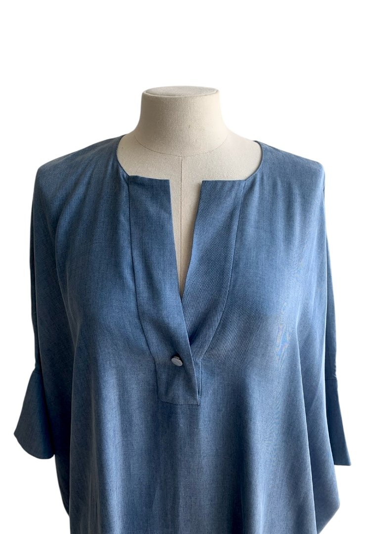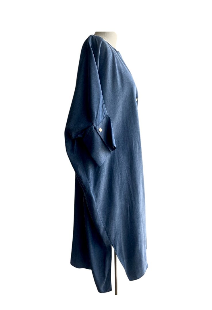 Vestido de tipo mezclilla suelto. hecho 100% de lyocell, botones en plata.