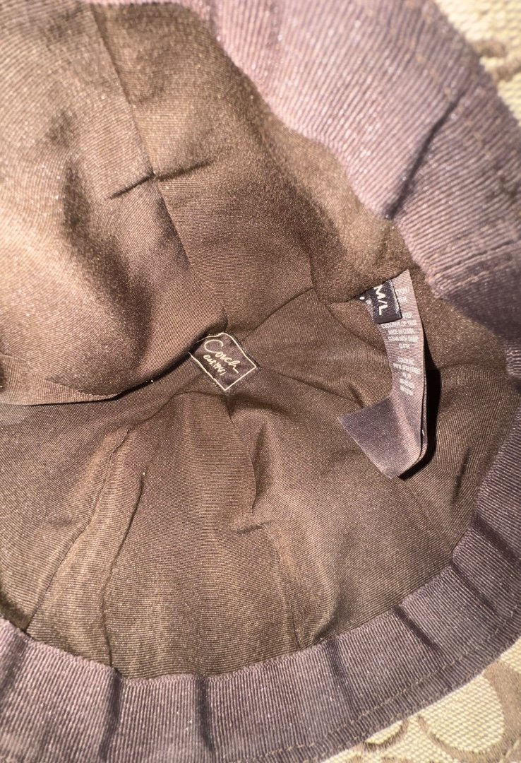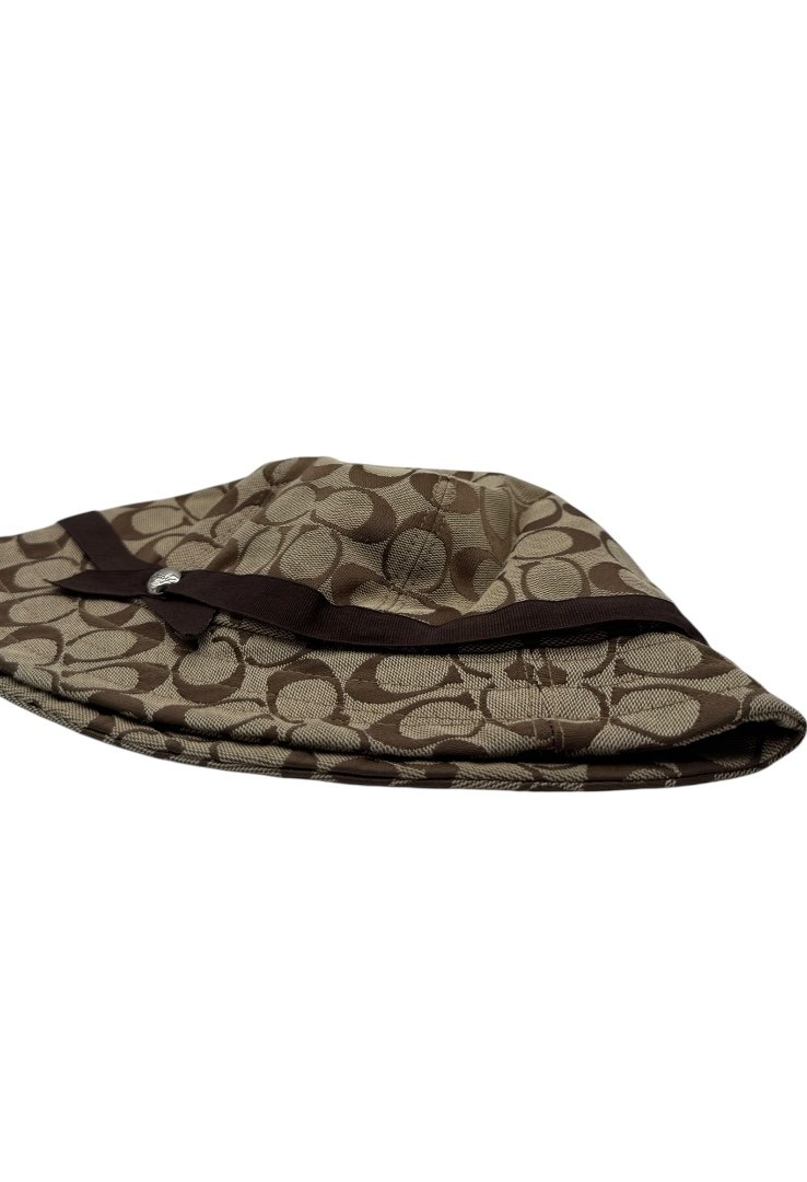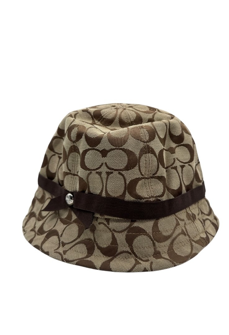 Bucket hat elaborado en algodón con diseño monogram, moño alrededor, aplique en plata.