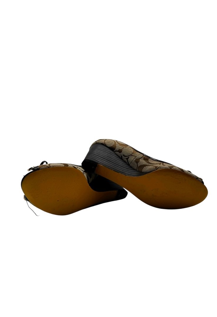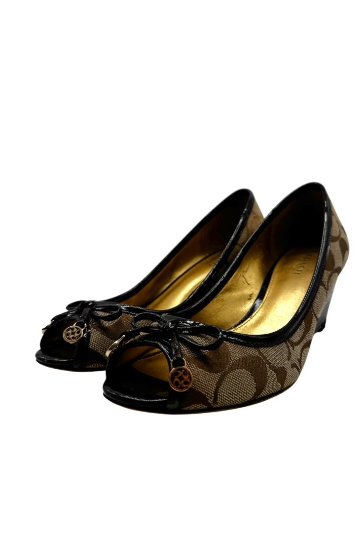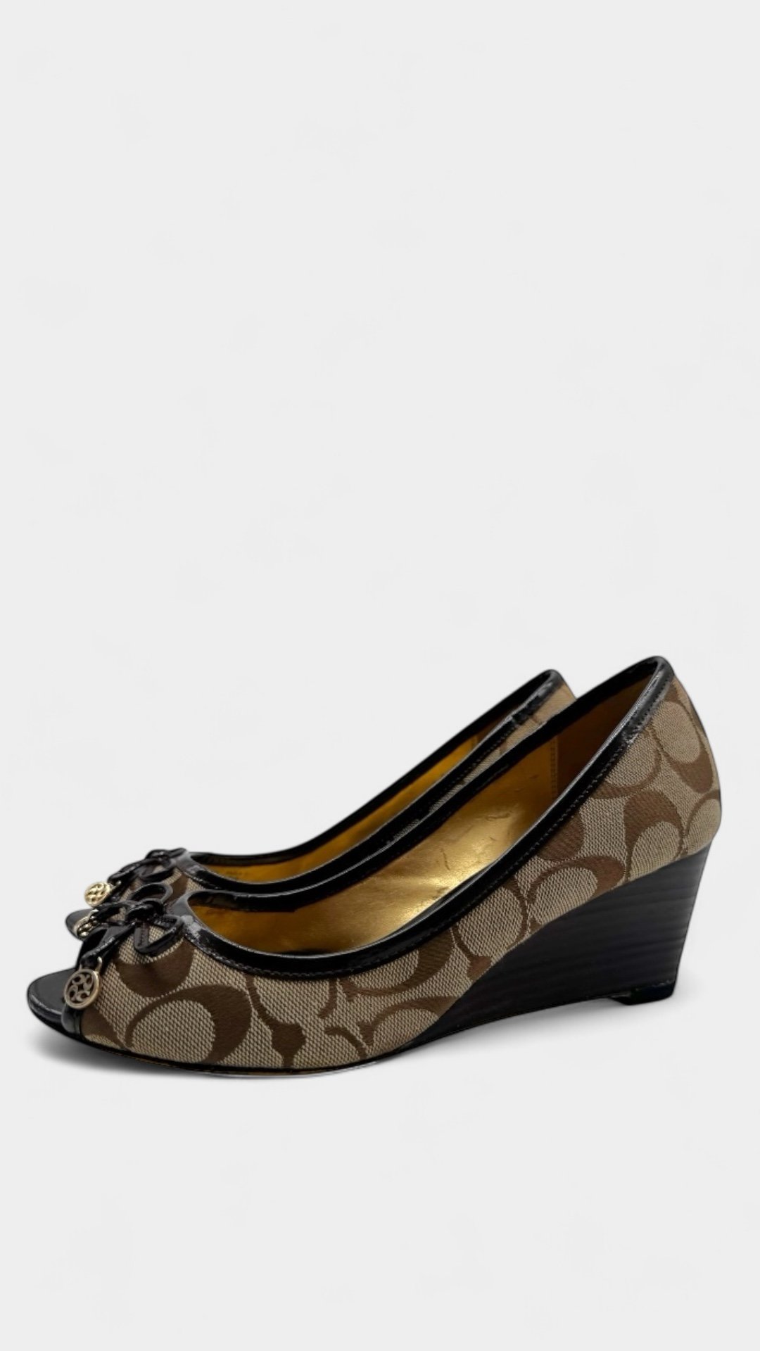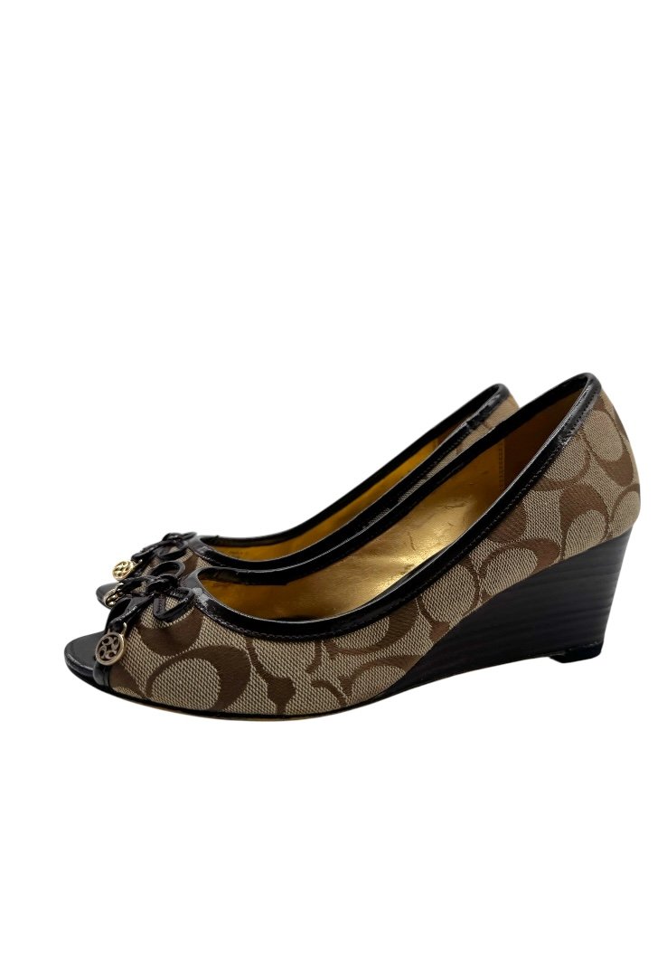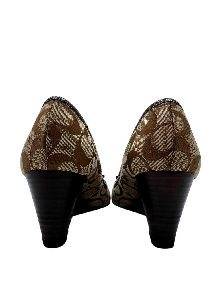 Tacones elaborados en canvas jacquard, moño decorativo, apliques en dorado.