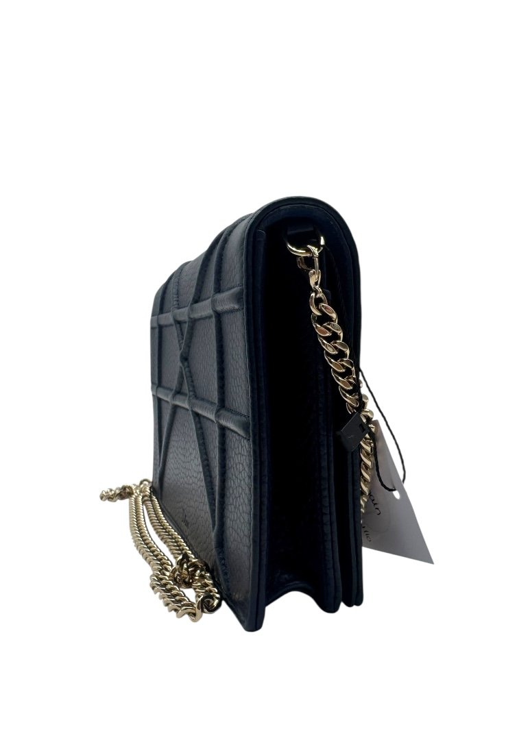 Bolso elaborado en piel granulado, con apliques en dorado, cierre en solapa con broche magnético, interior de gamuza.
