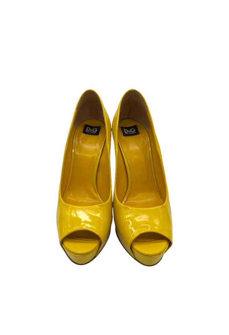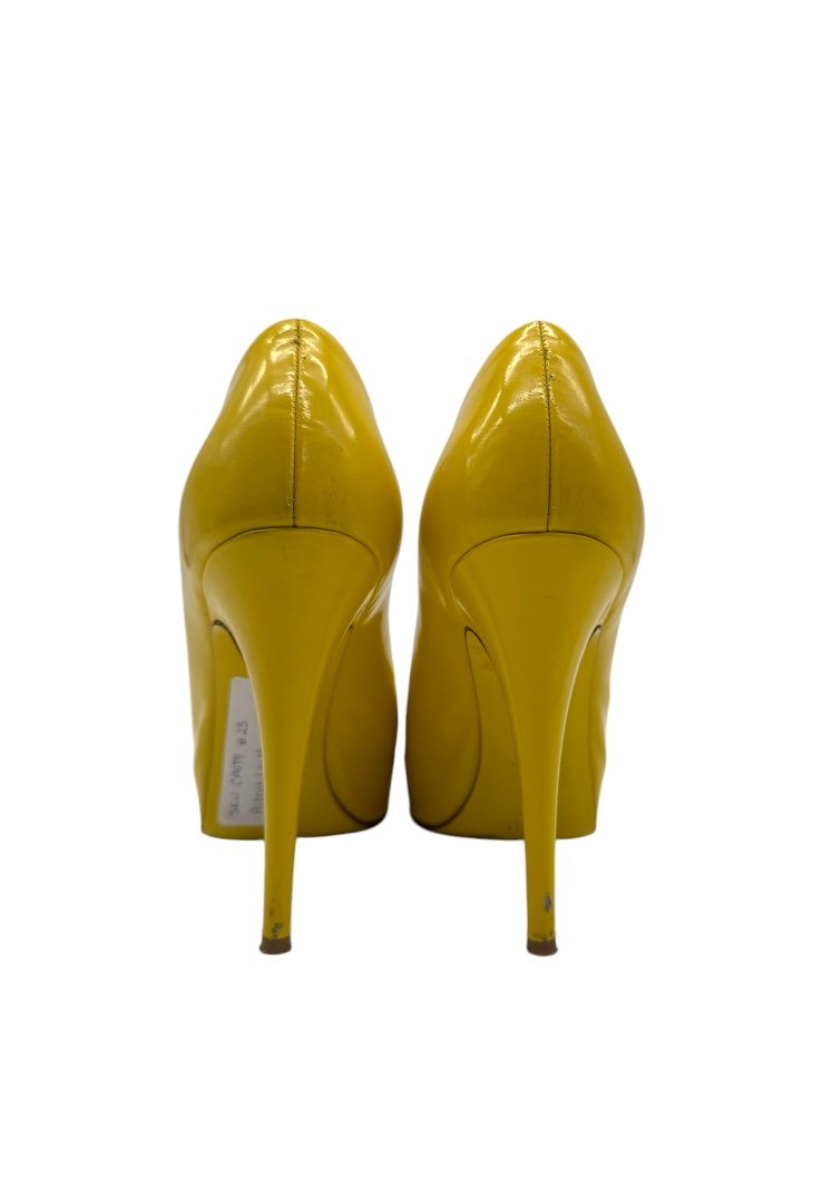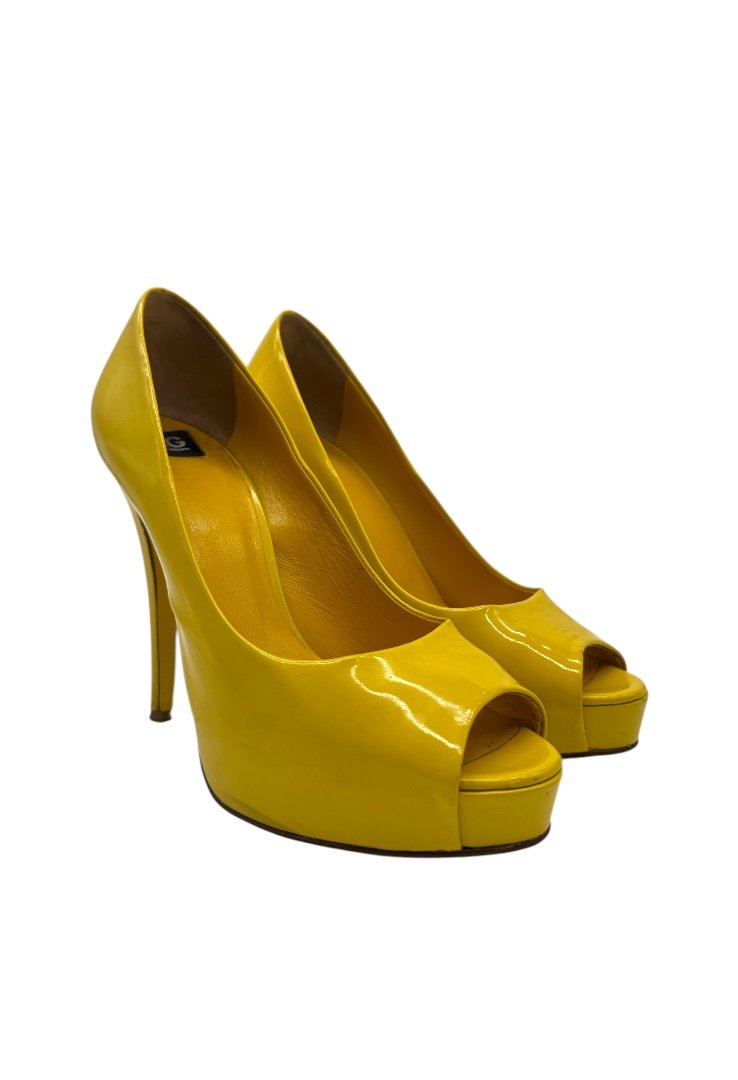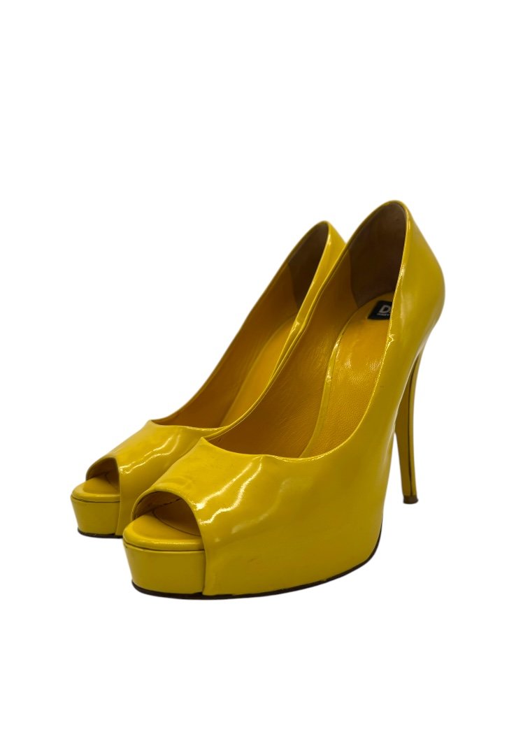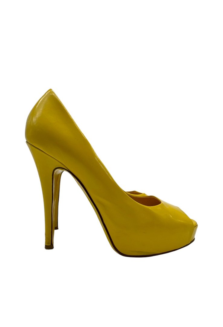 Tacones con punta abierto acabado en charol.