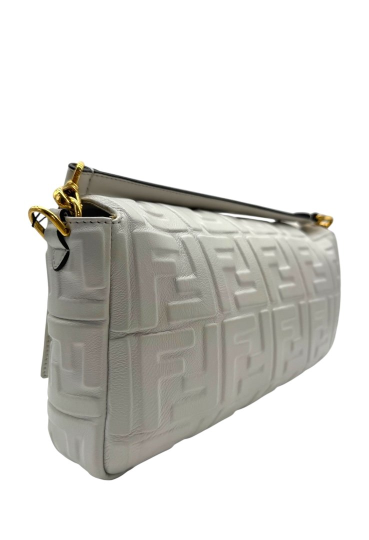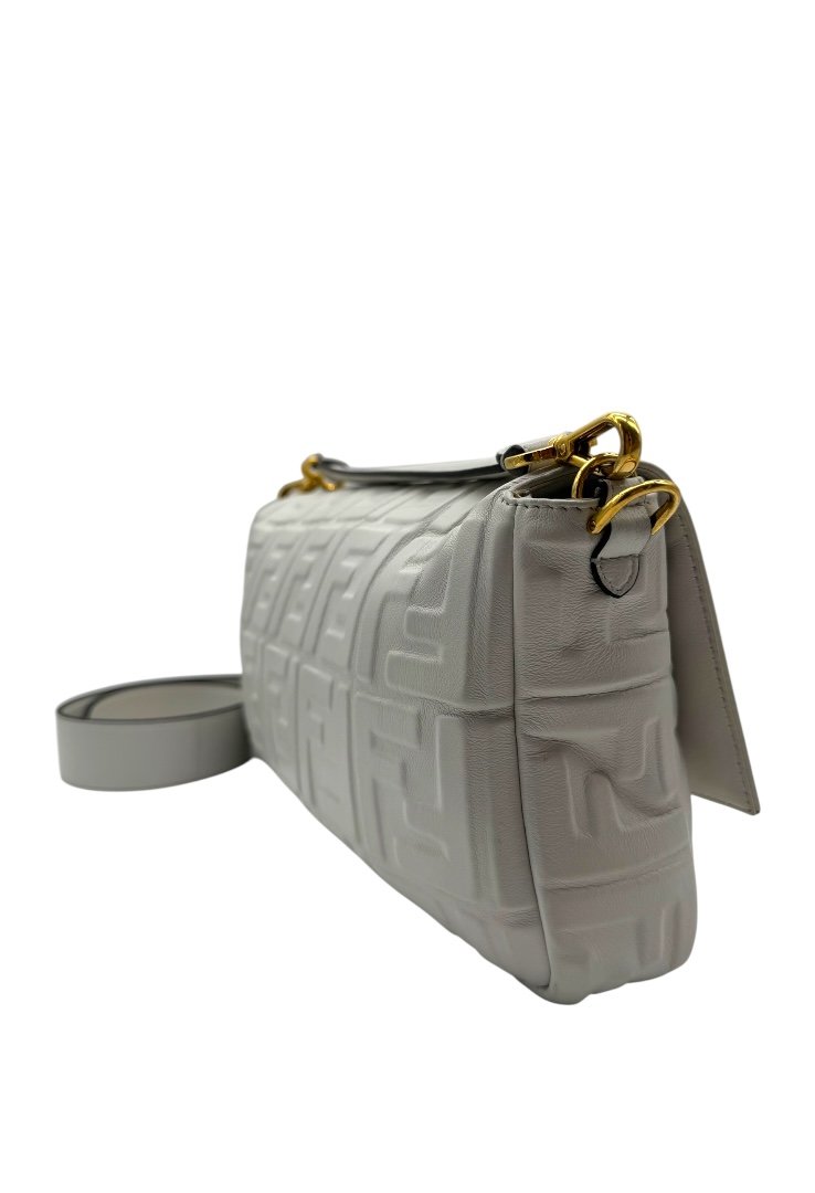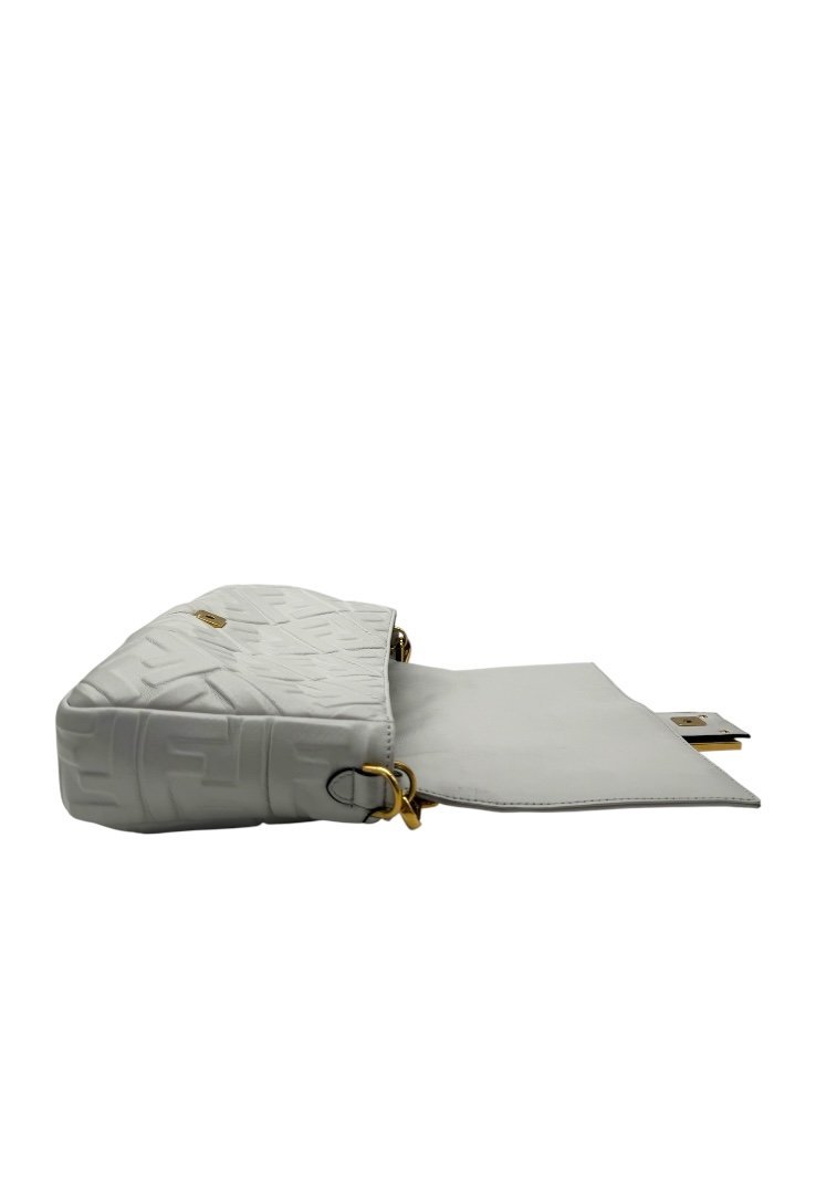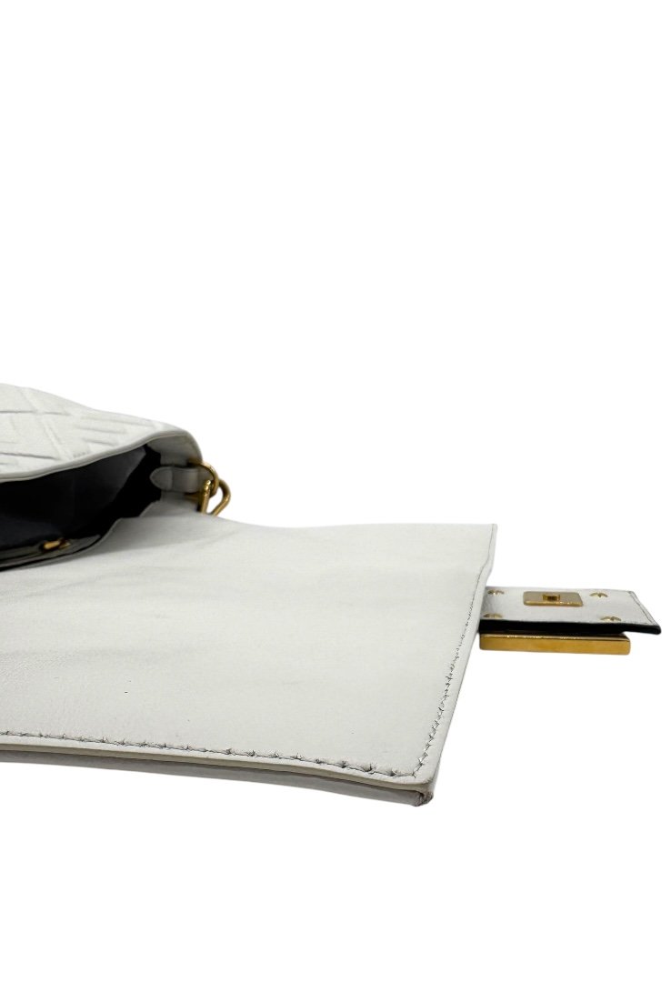 Bolso elaborado en piel, diseño monogram, apliques en dorado, cierre en solapa con broche, placa del logo.