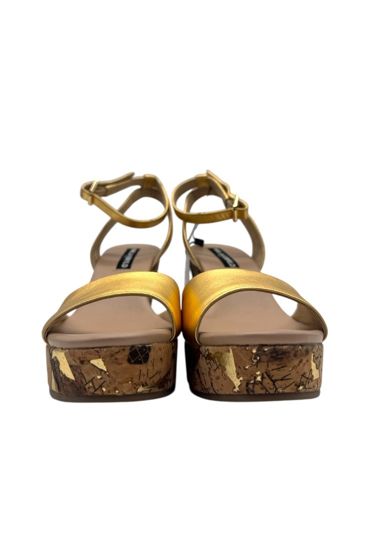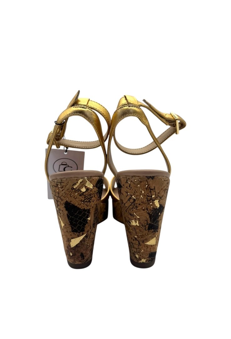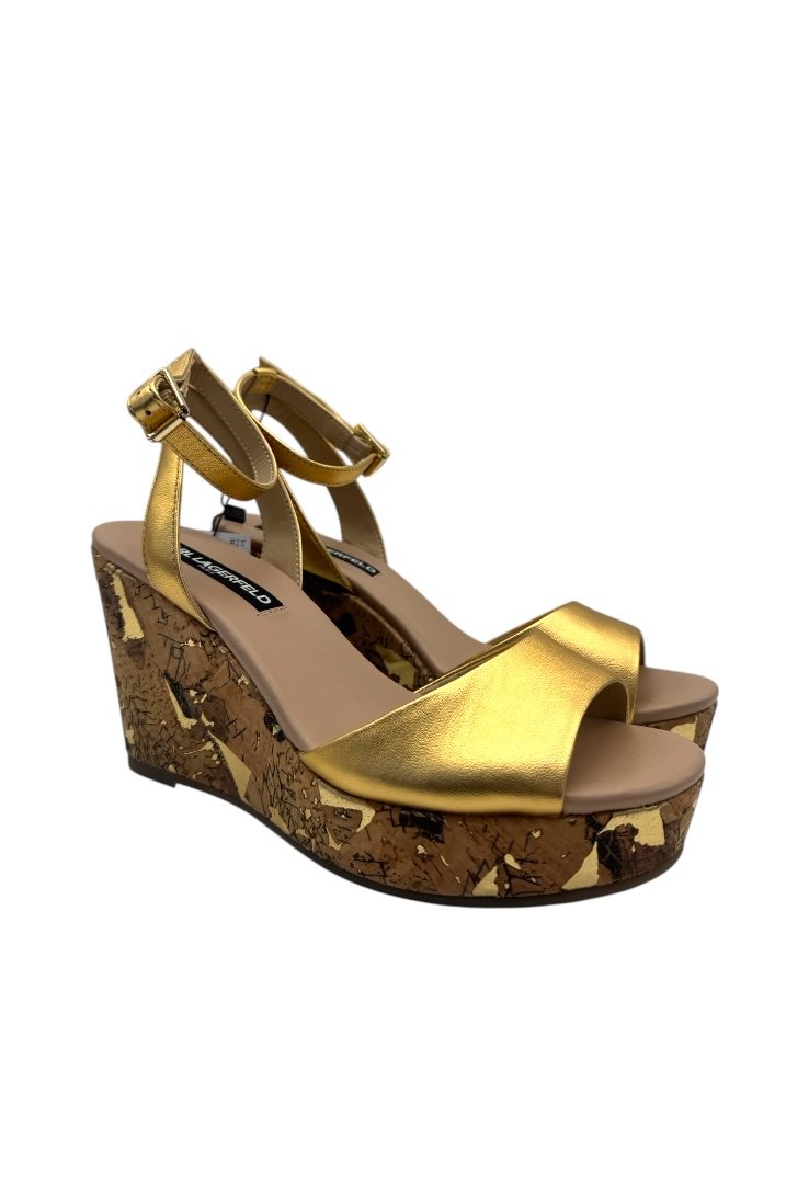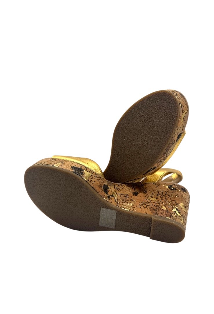Alpargatas de seula de corcho detalles en dorado, asa ajustable al tobillo.