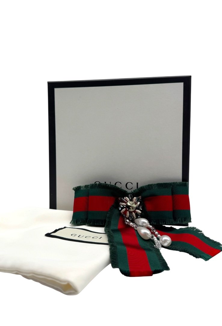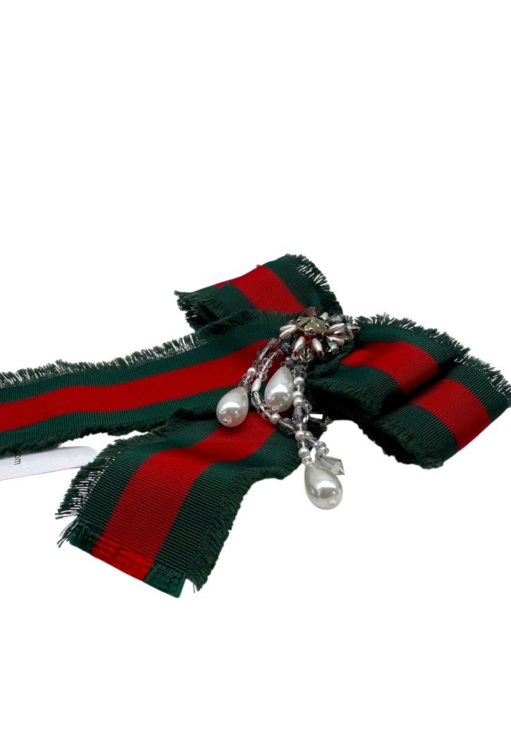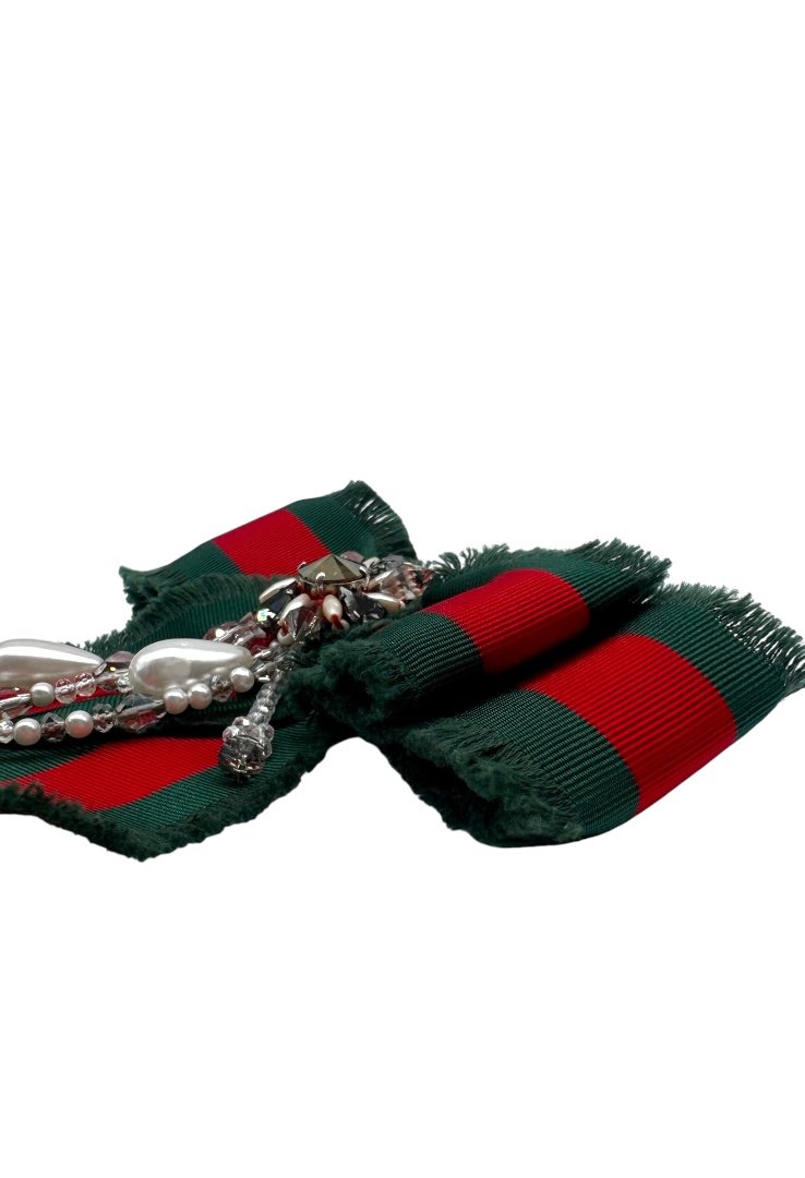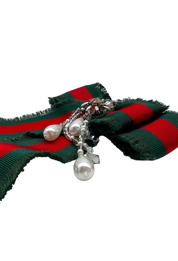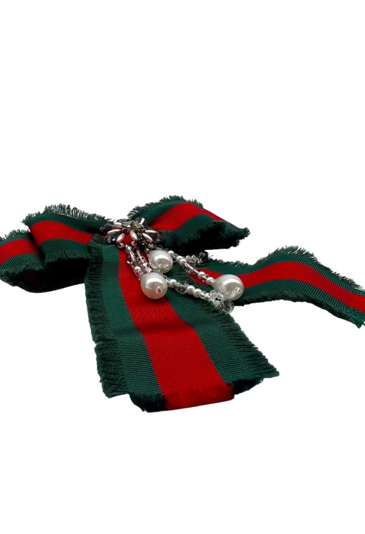 Broche de moño, con pedrería falsa y abalorios.