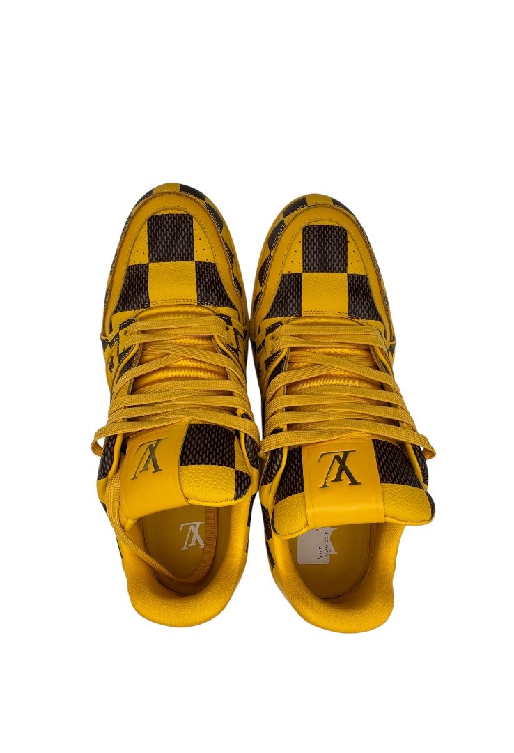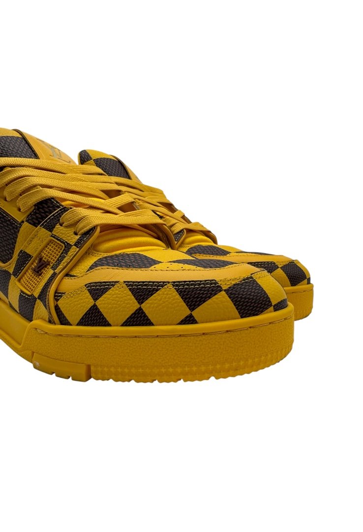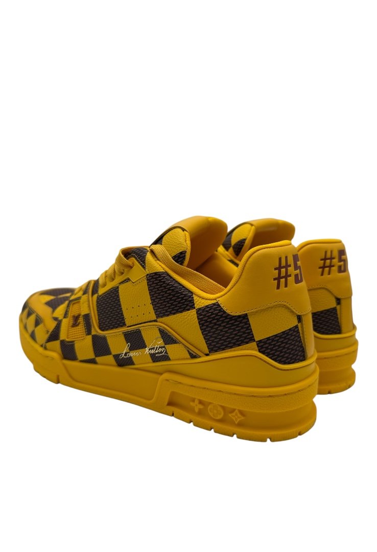 Los tenis LV Trainer fusionan el estilo de béisbol clásico con el motivo Damier Pop de la temporada. Este modelo está confeccionado en piel de becerro y luce un empeine minuciosamente detallado así como una suela en goma tonal adornada con flores Monograma.