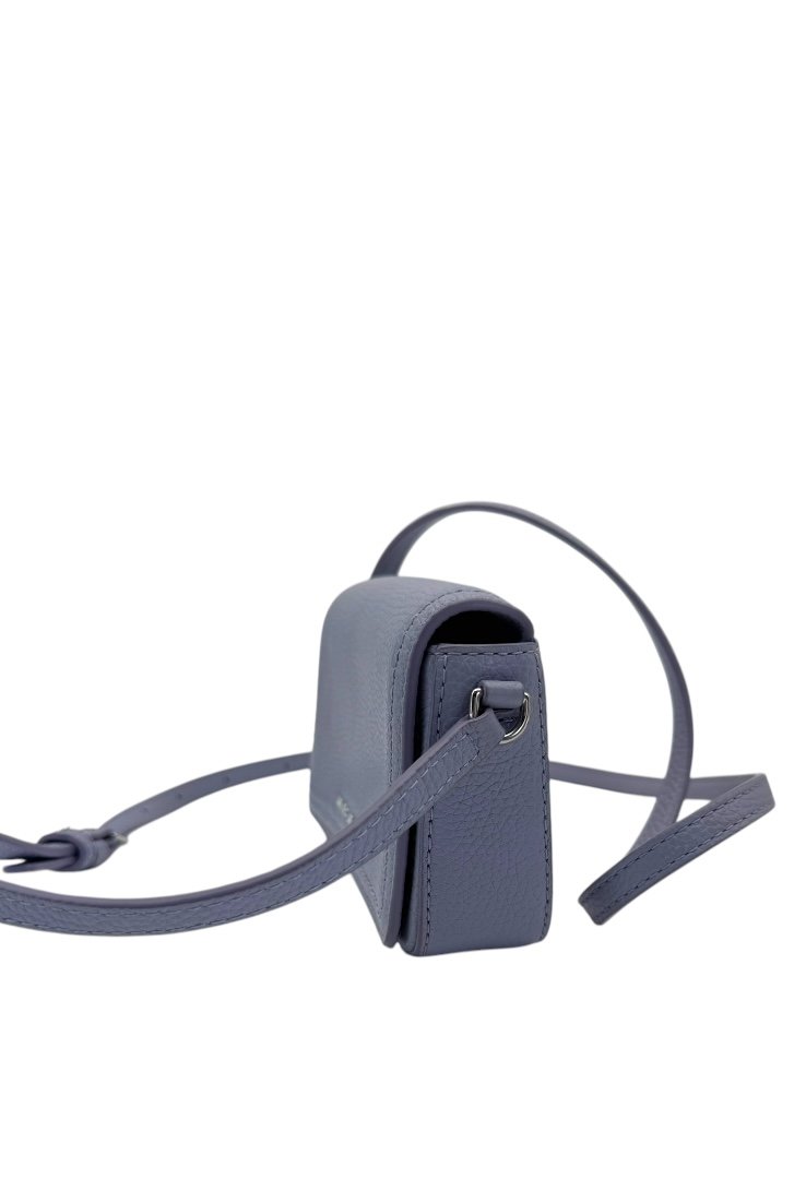 Bolso de cuero granulado, con asa ajustable, logo en relieve en la parte delantera y herrajes en plata.
