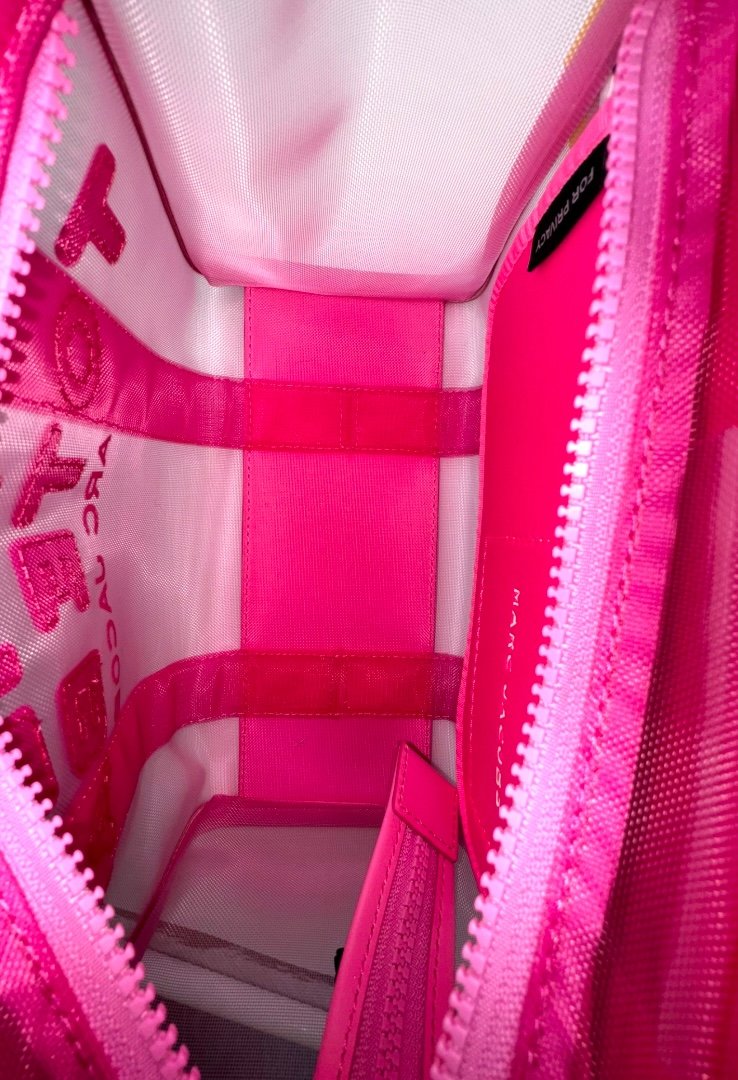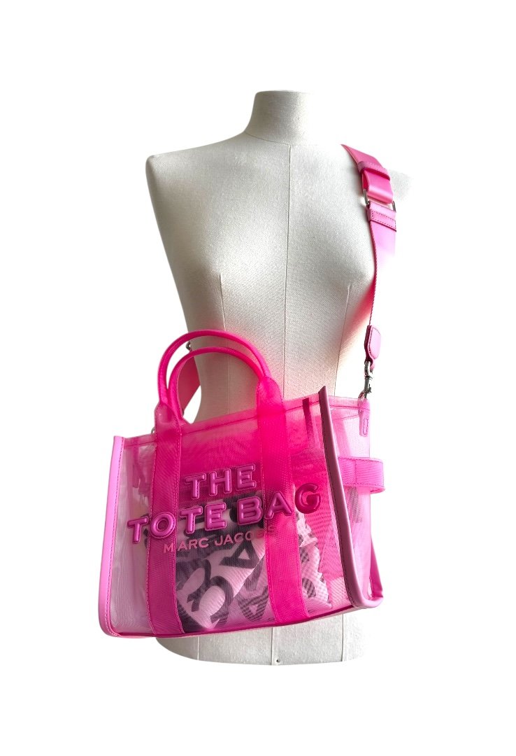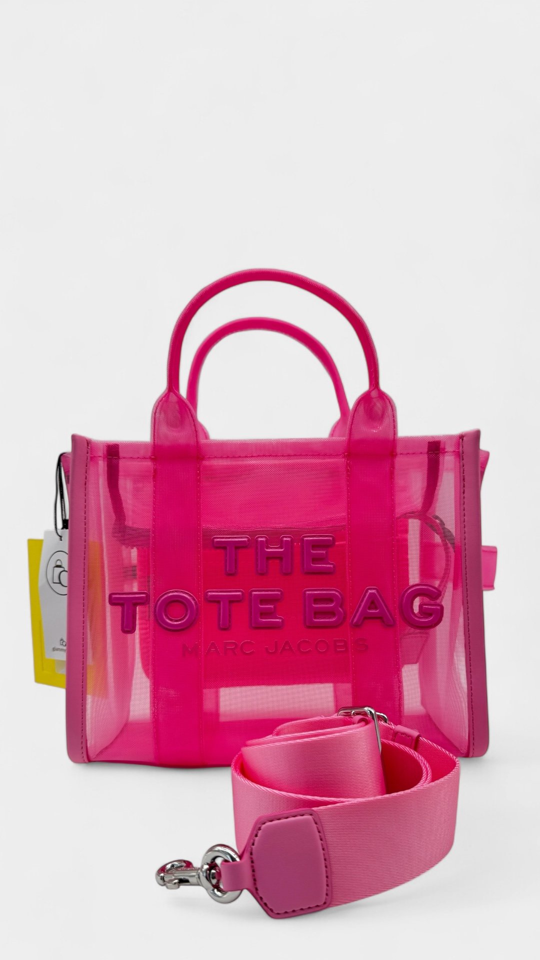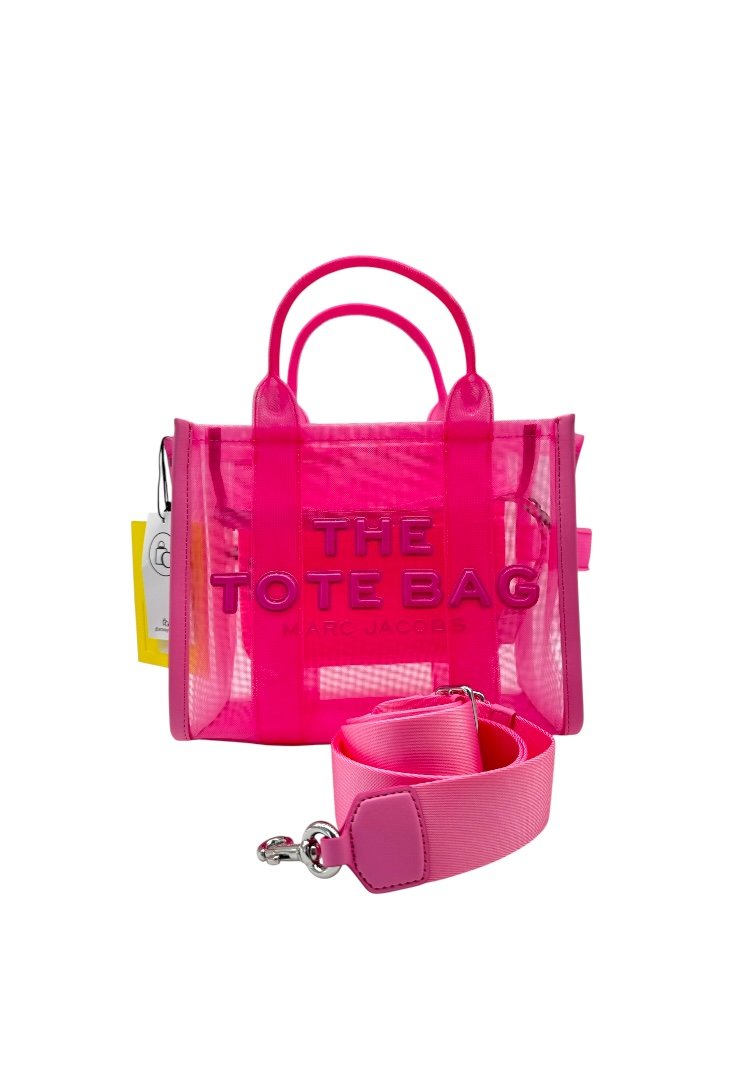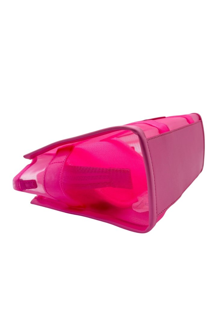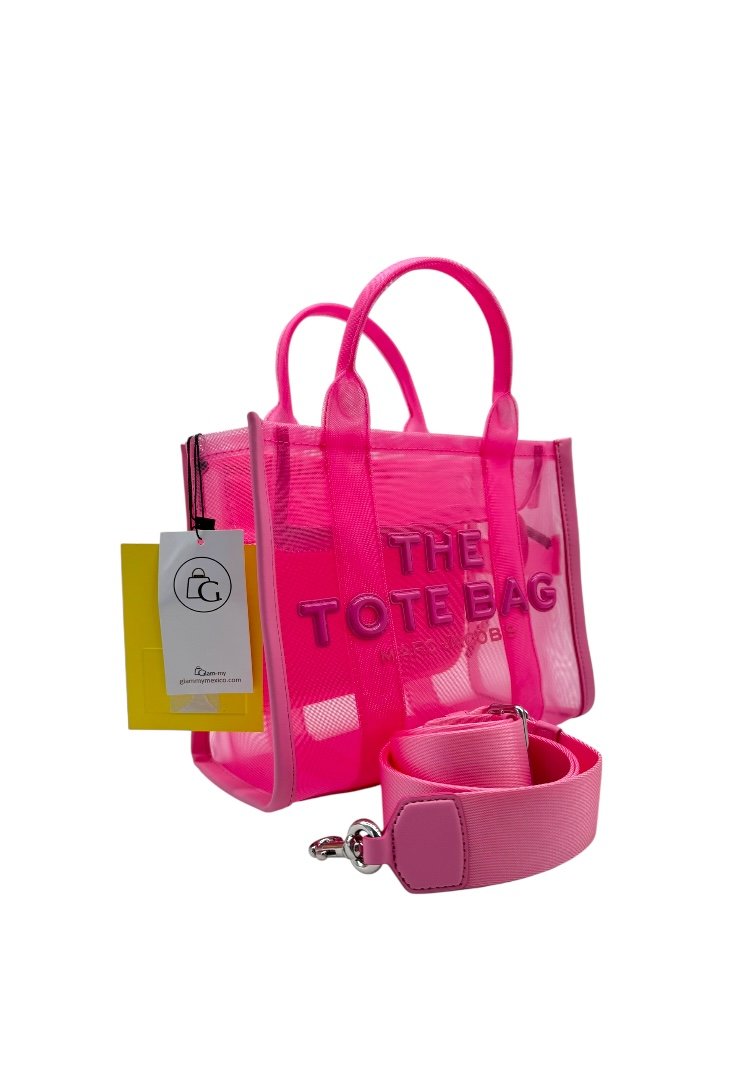 laborado en paneles de malla de nylon, dos asas, correa ajustable y removible para el hombro, cierre de cremallera, bolsillo interno, aplicaciones en piel del logo de la marca.