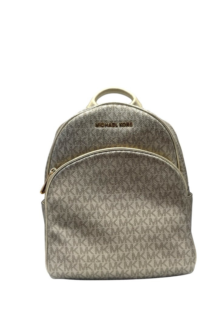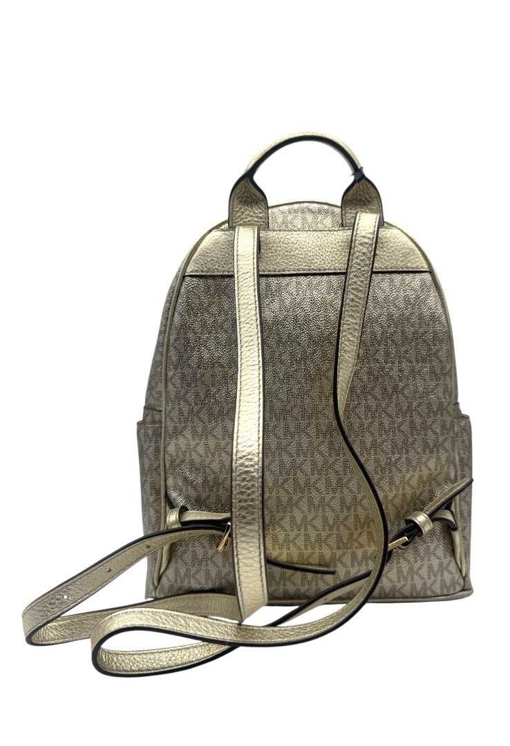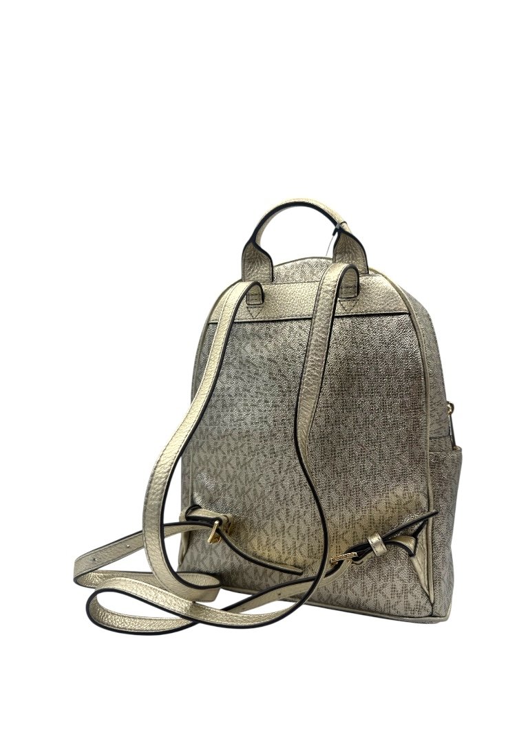 Mochila elaborada en lona revestida con diseño monogram, cierre de cremallera, compartimento externo, apliques en dorado.