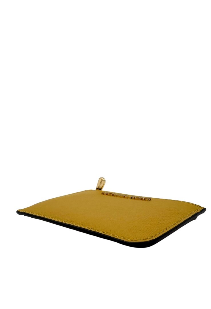 Cartera elaborada de piel curtidas, apliques en dorado, cierre de cremallera.