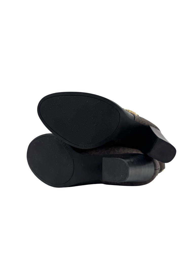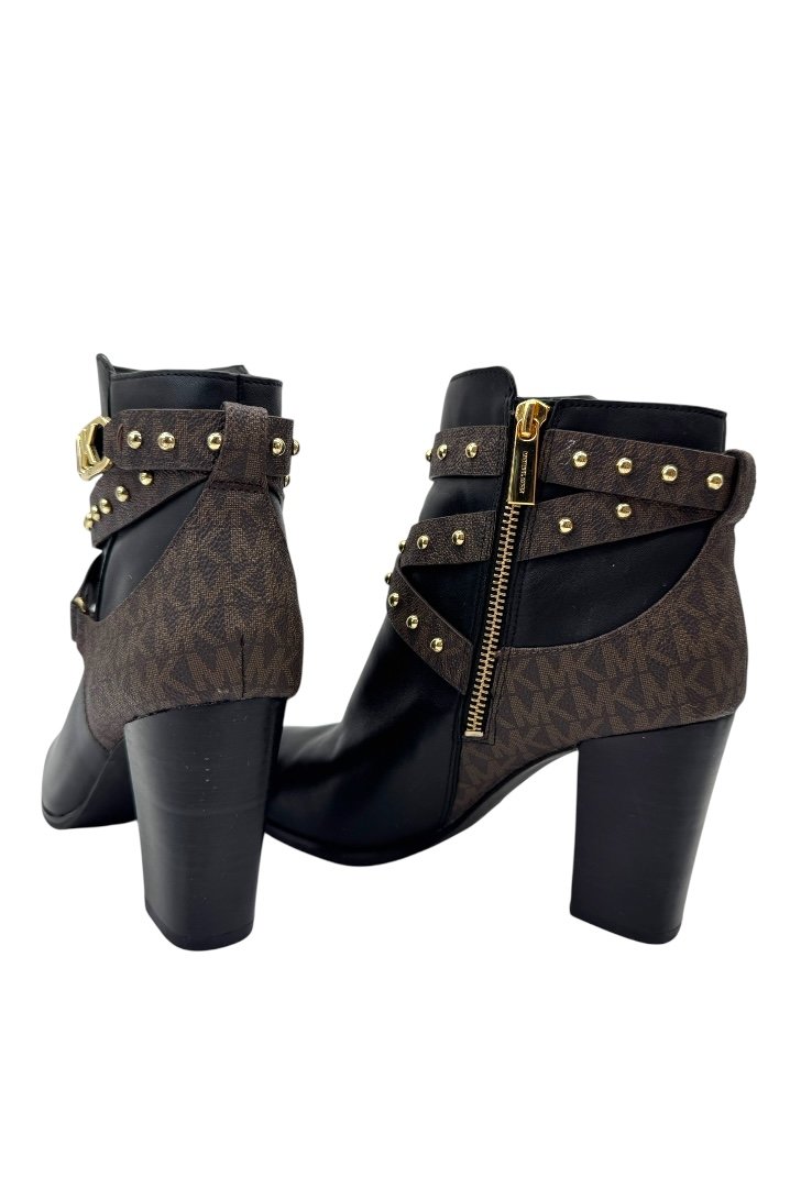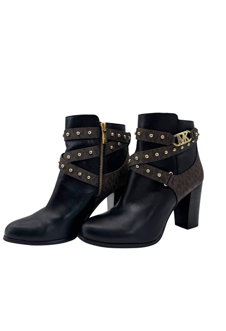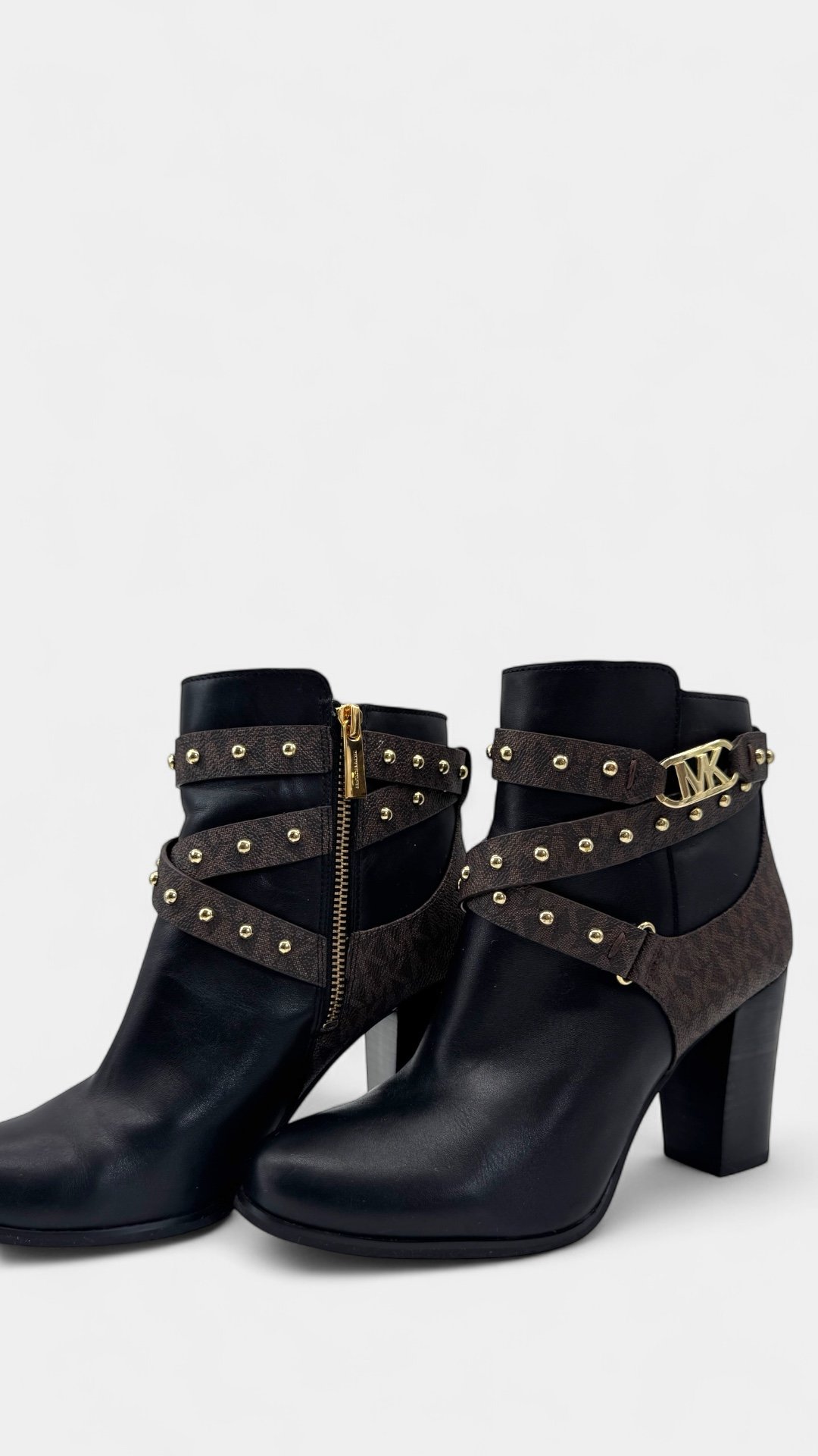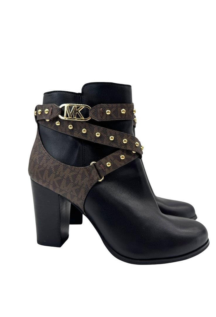Botas fabricas en piel, asas de lona revestida monogram, con apliques en dorado.
