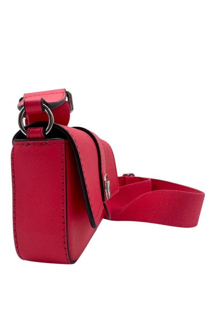 Bolso elaborado en saffiano, asa ajustable, apliques en plata, cierre de botón magnético.