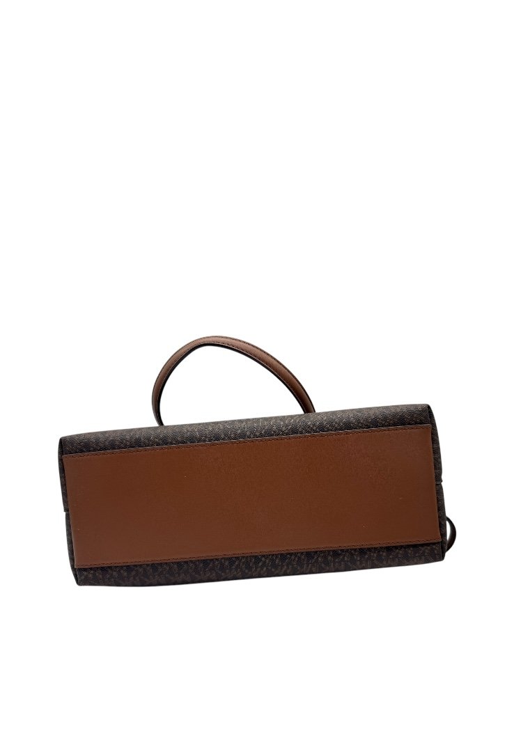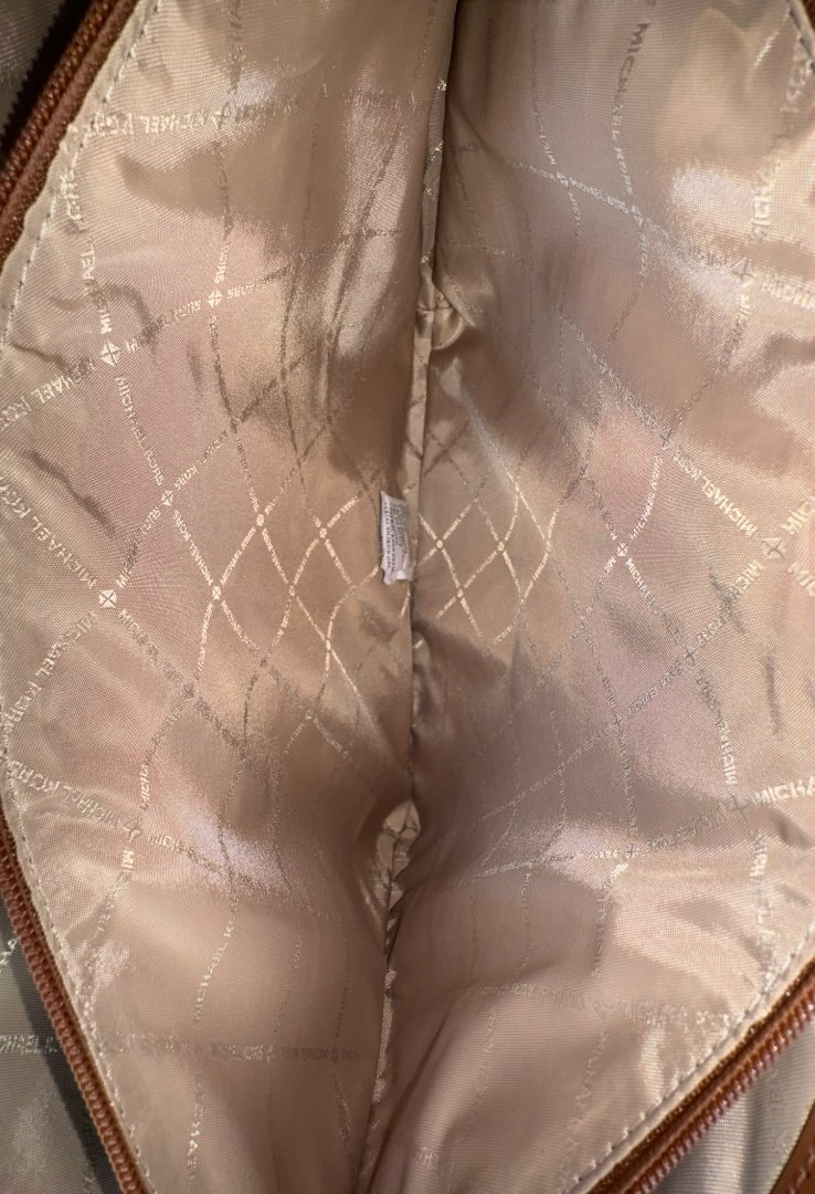 Bolsa fabricada de lona, con asas color café, herrajes en dorado, compartimiento en medio de bolsa con gran capacidad.