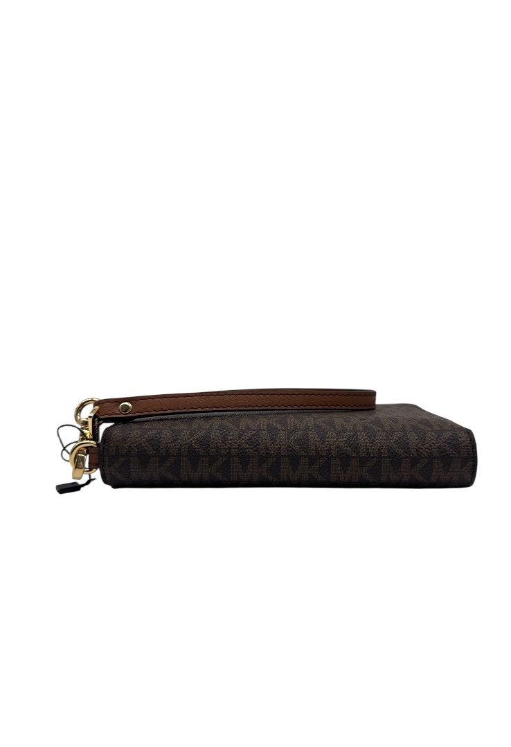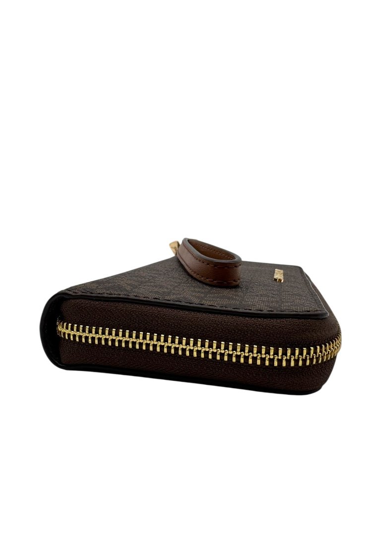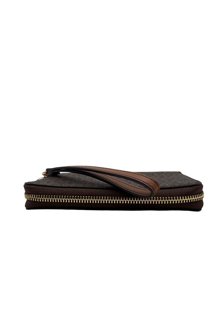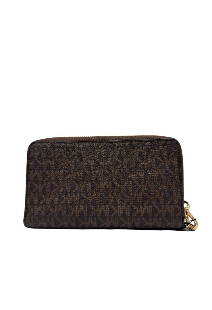 Bolso elaborado de lona monogram, asas y ribete de piel, apliques en dorado, cierre principal con cremallera.