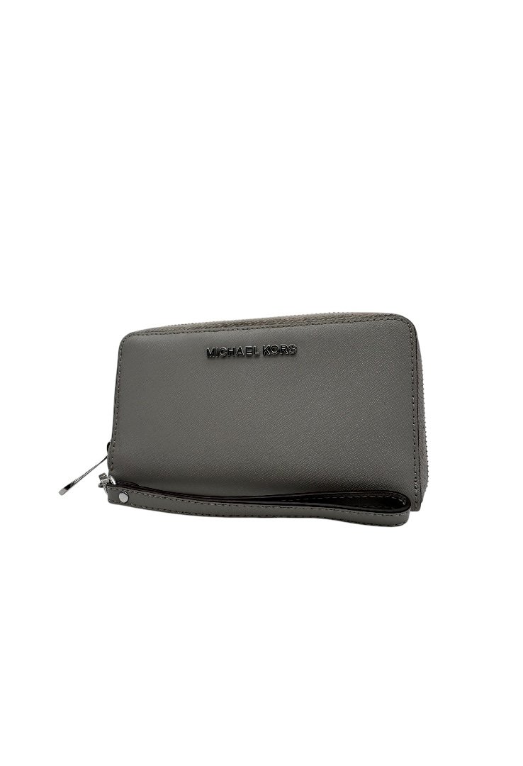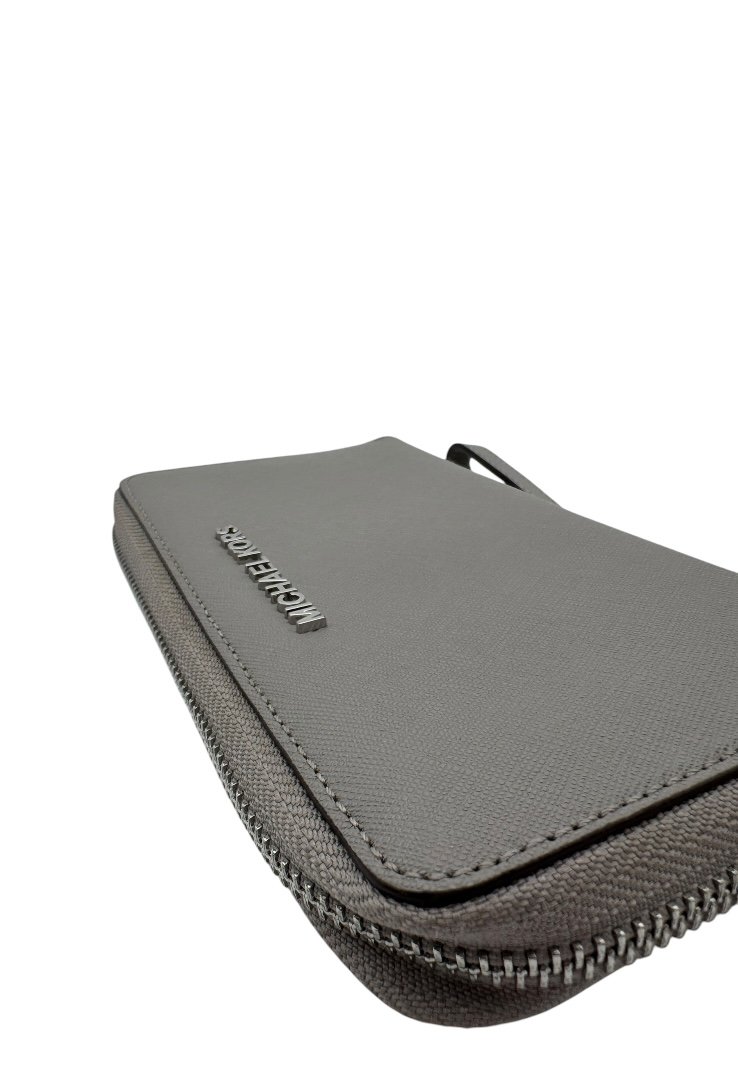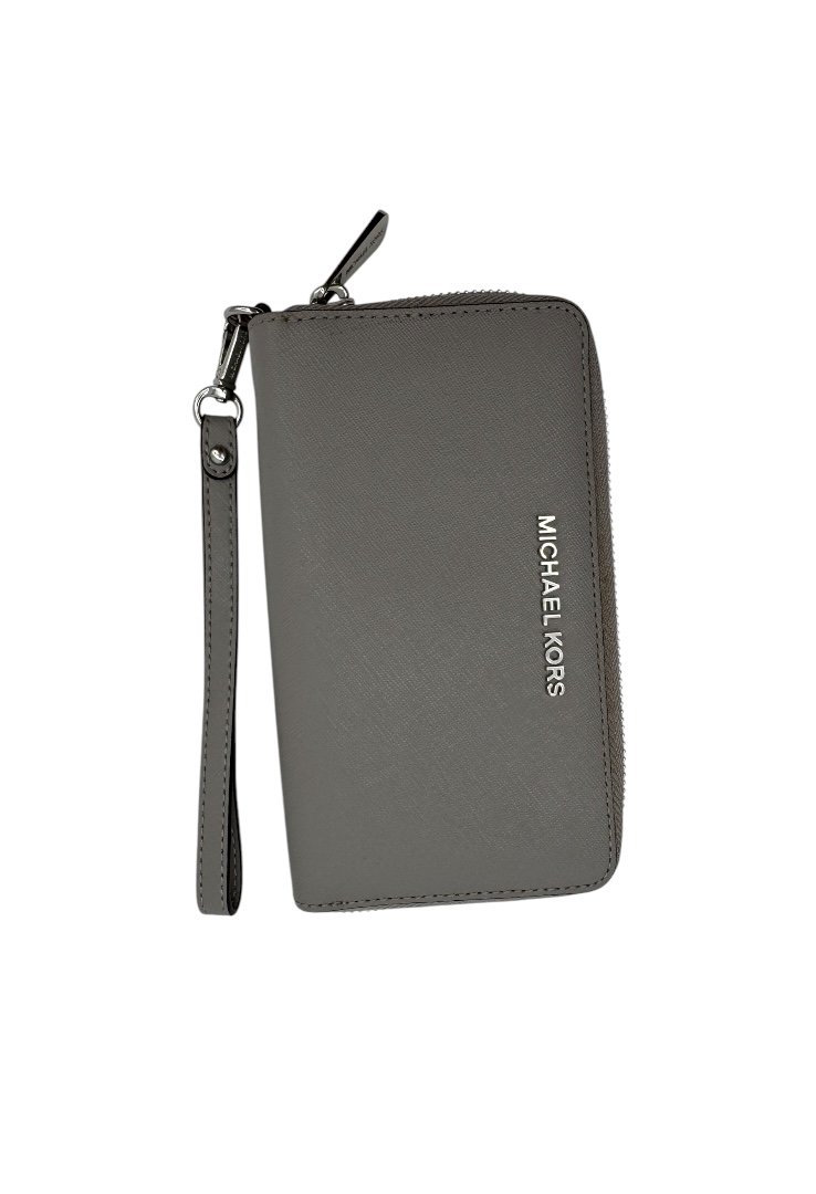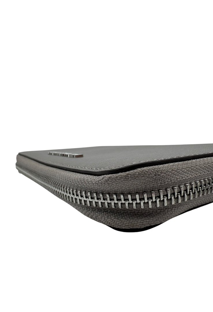 Cartera de piel, cremallera circundante se abre para revelar un gran número de ranuras para tarjetas y un compartimento pequeño con cremallera para las monedas, llévala por la tira de pulsera.