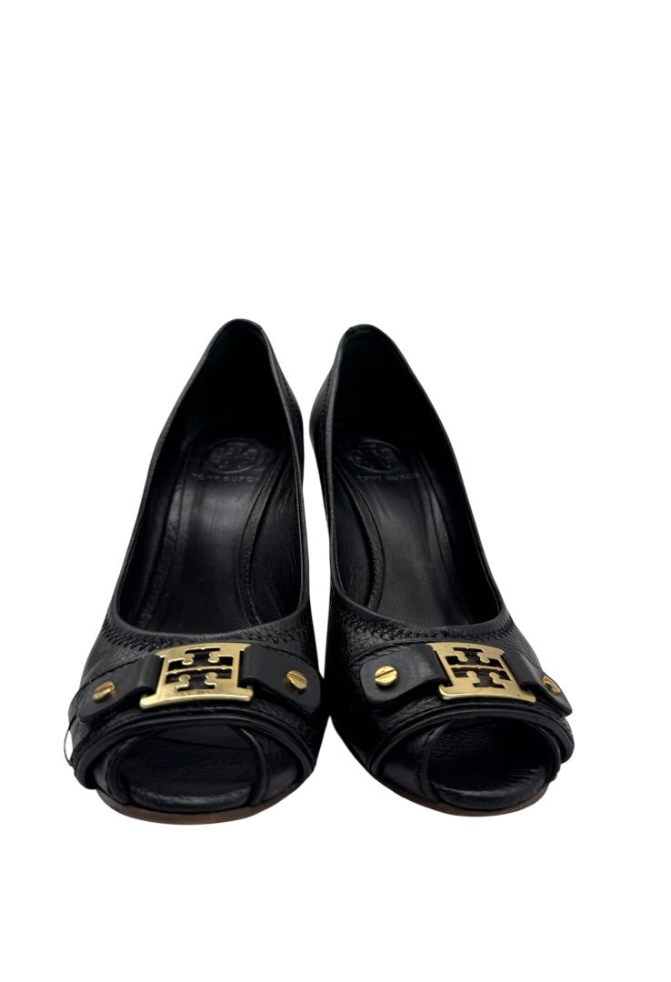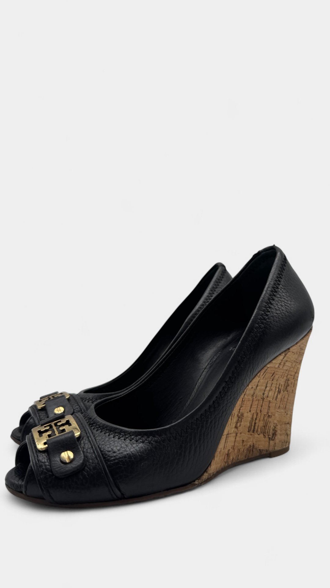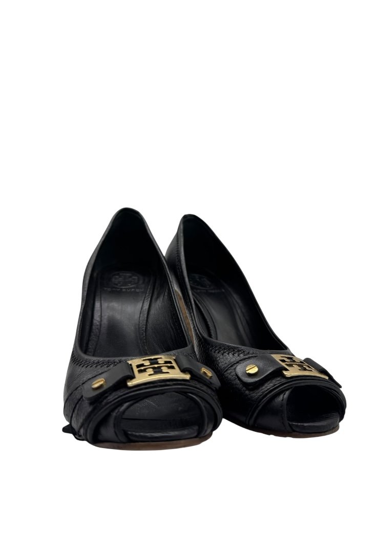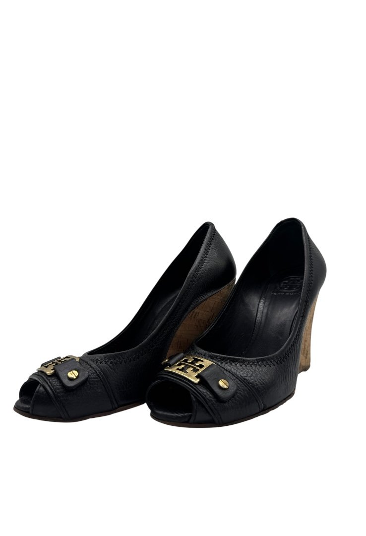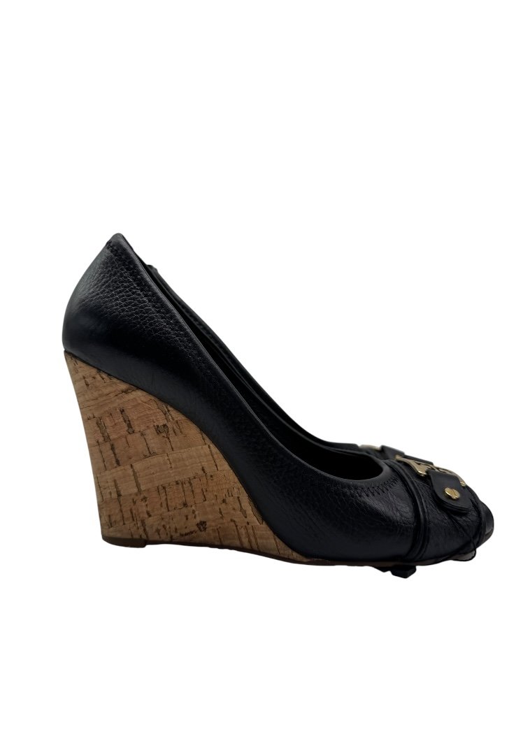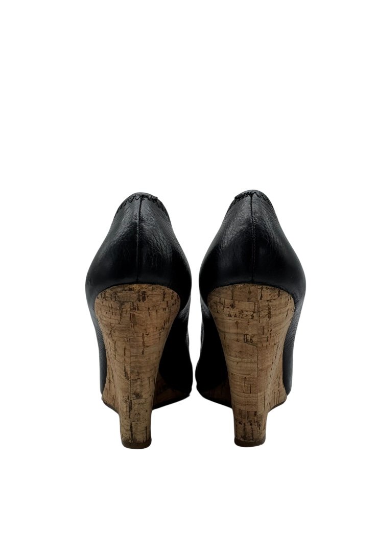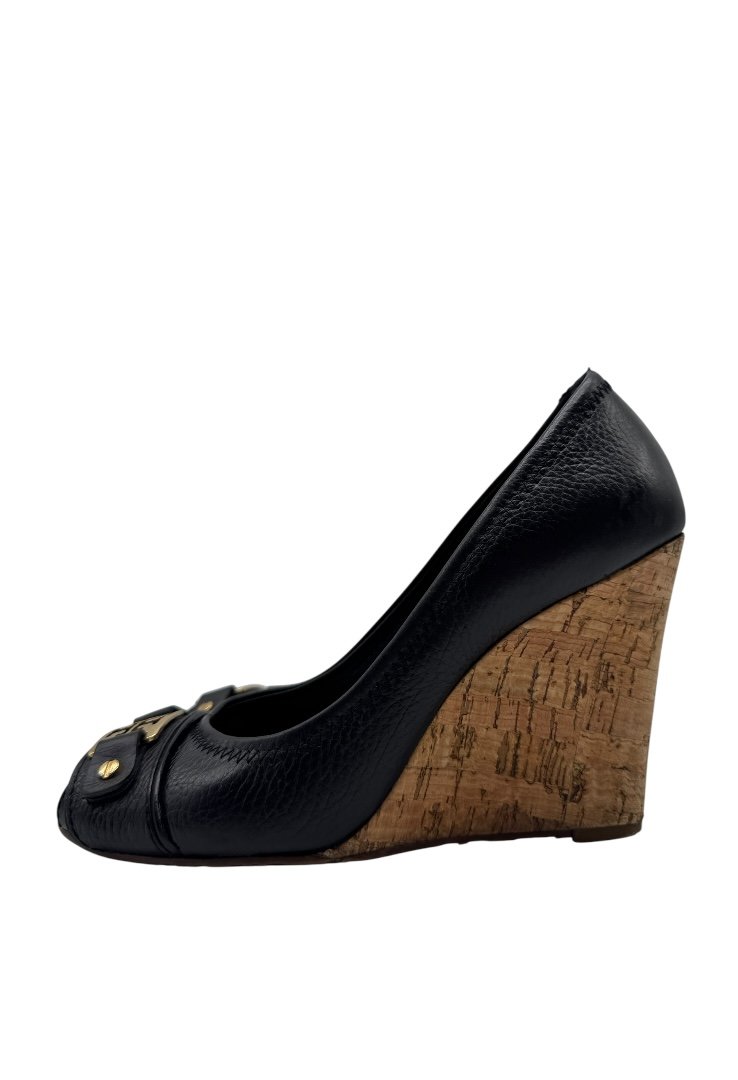 Tacones de cuero, con plataforma de caucho y suelda de goma, placa en dorado.
