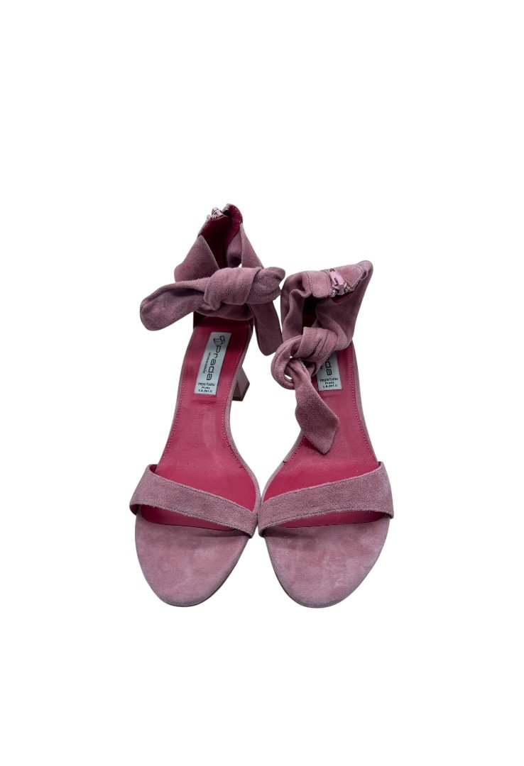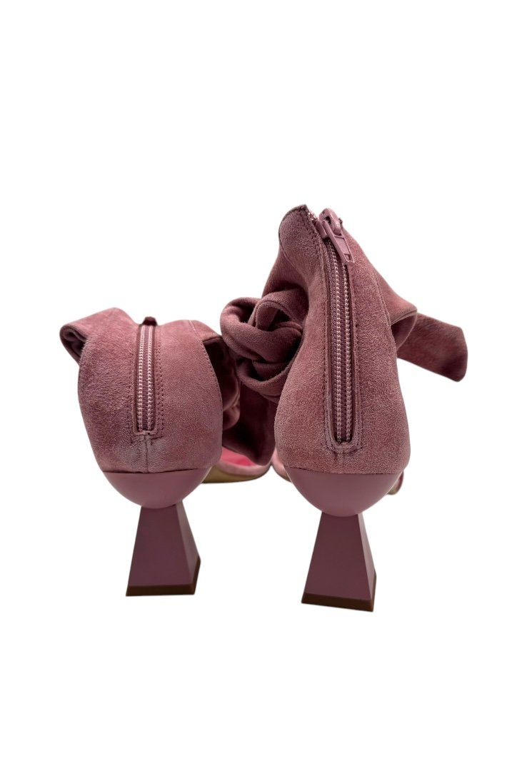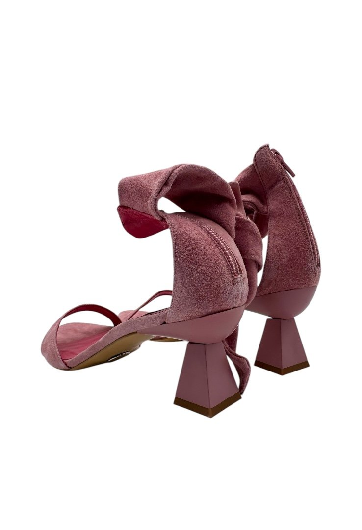 Zapatos de tacón gamuza con tacon en forma de piramide y correa para el tobillo