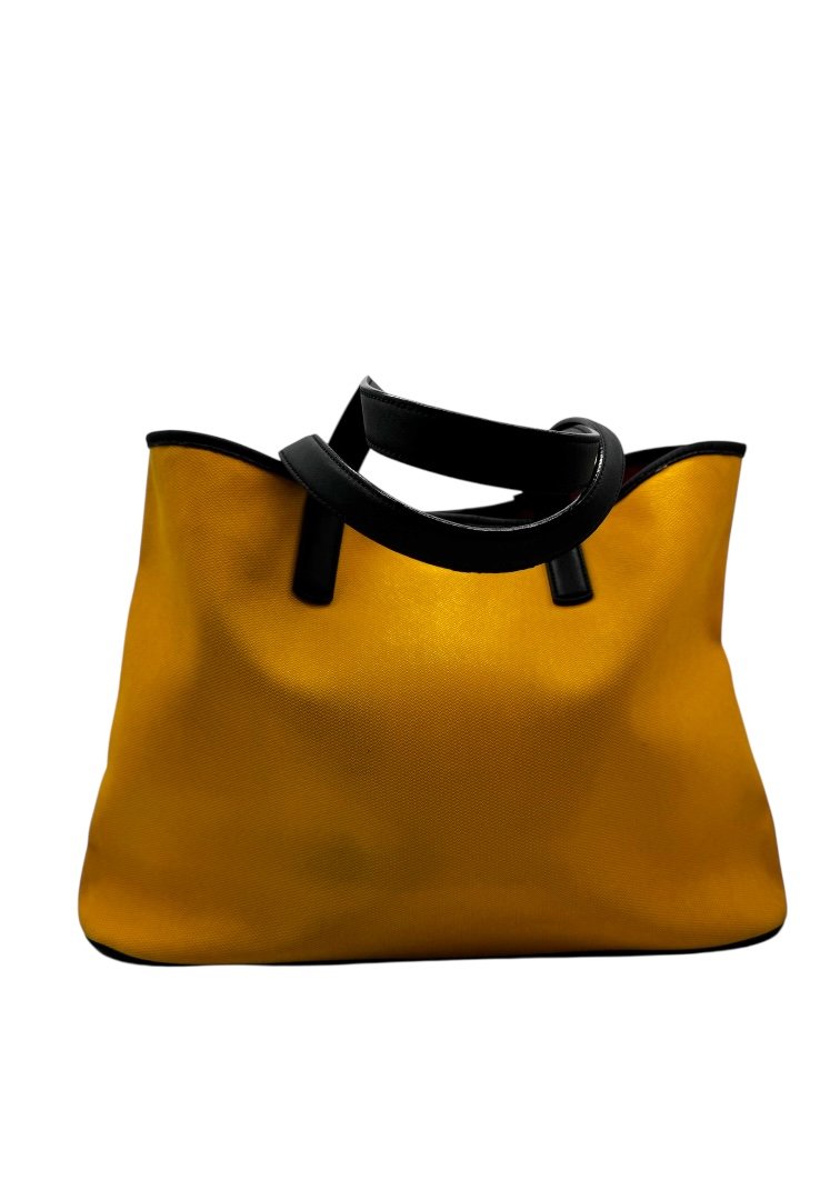 Confeccionada en vinilo, herrajes en laton, asas al hombro