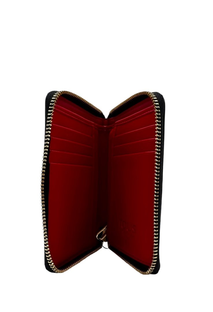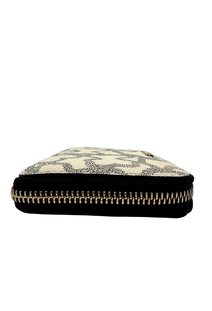 Confeccionado en vinilo con efecto piel, letras de la marca en color dorado.