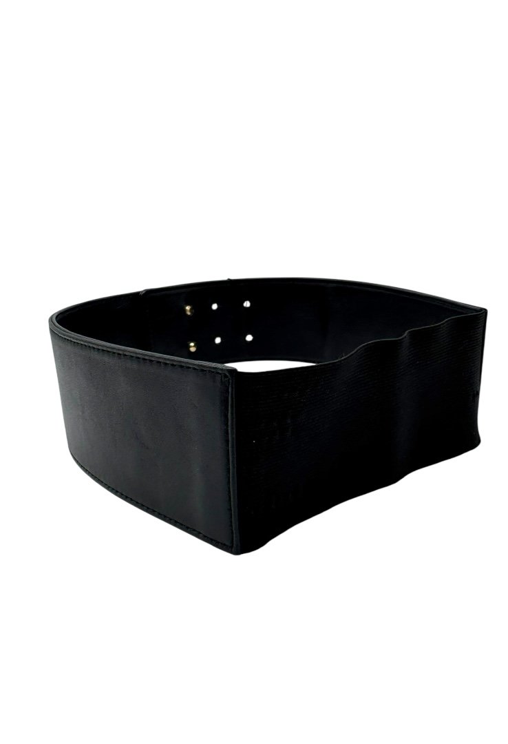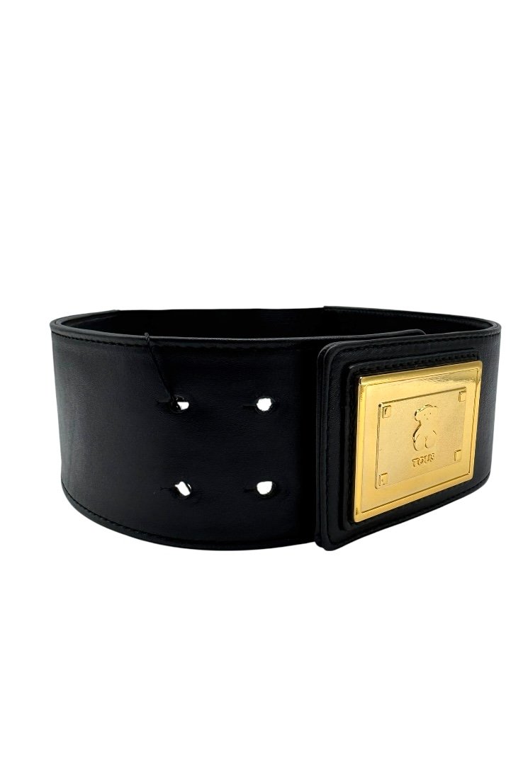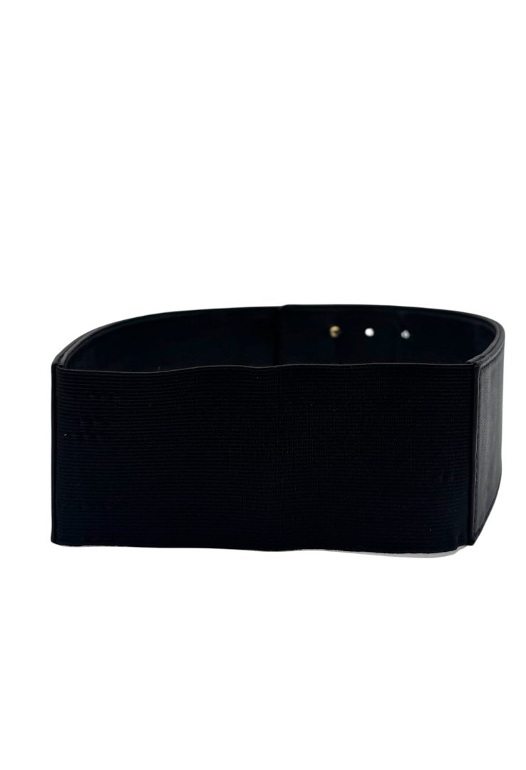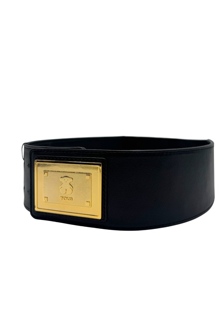 Cinturón elaborado en cuero, con una parte stretch, placa en dorado con la marca.