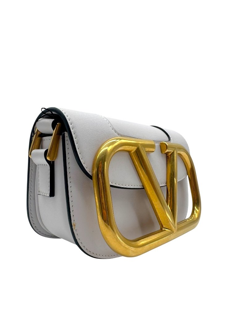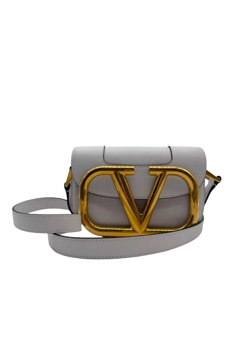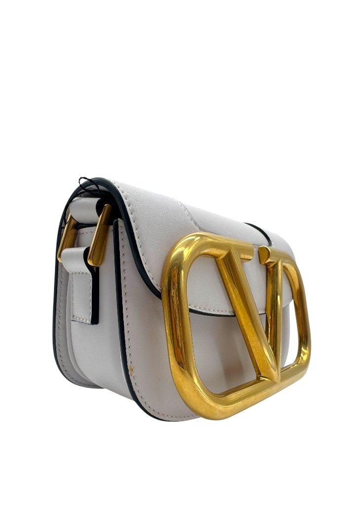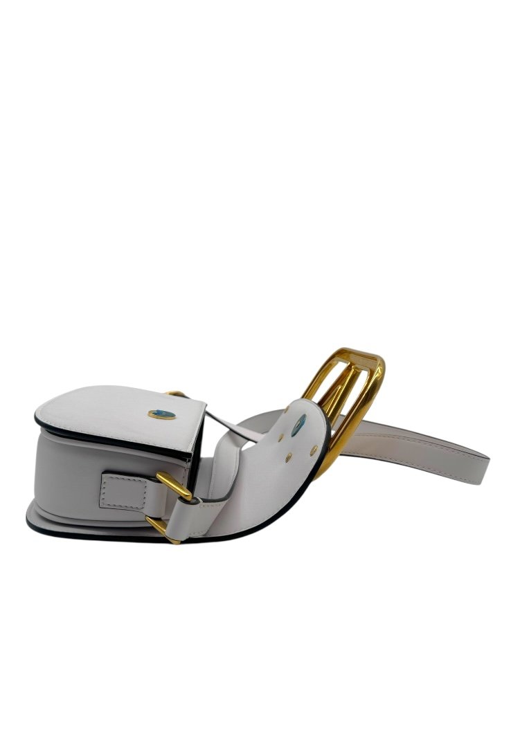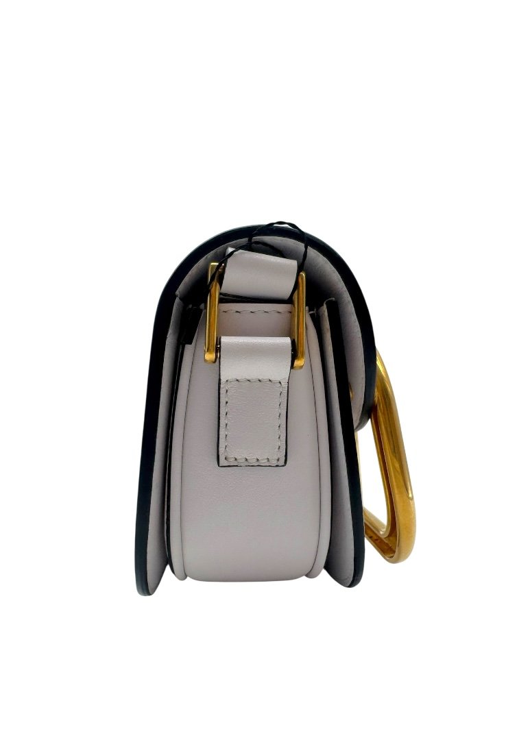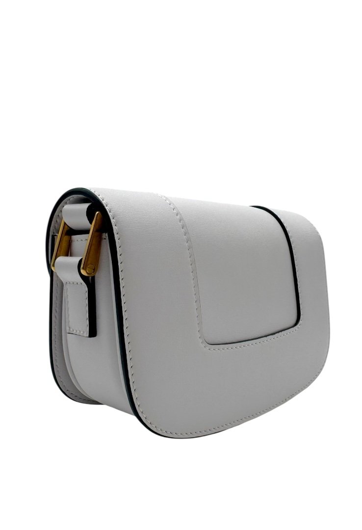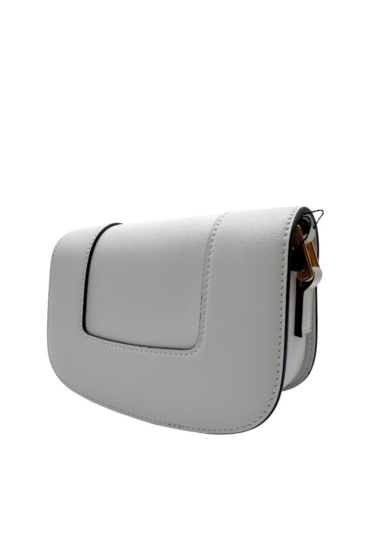 Bolso elaborado en piel, con apliques en dorado, placa del logotipo en dorado, cierre en solapa con broche magnético.